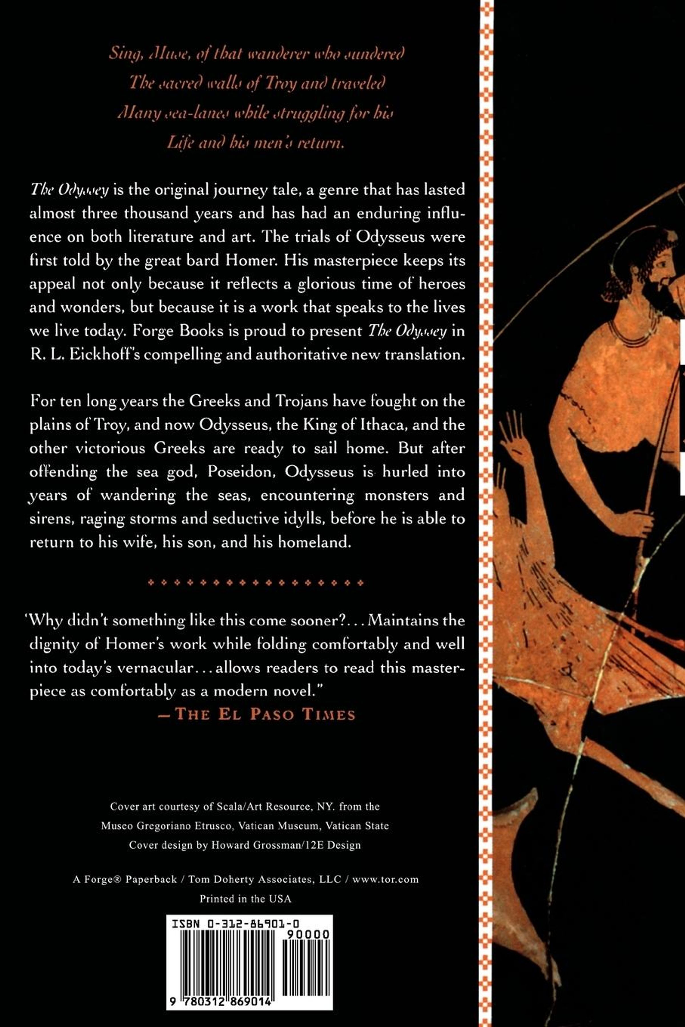 This masterpiece keeps its appeal not only because it reflects a glorious time of heroes and wonders, but because it is a work that still speaks to the lives we live today. Forge book is proud to present The Odyssey in Dr. Eickhoff's compelling and authoritative new translation.