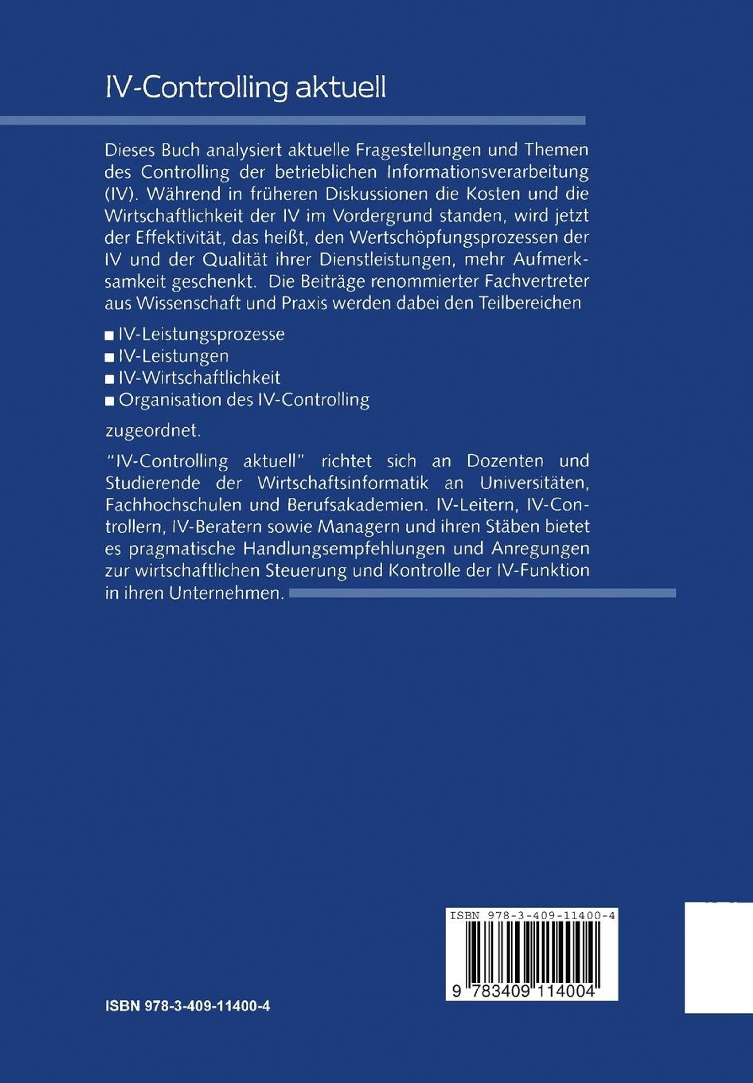 I: IV-Leistungsprozesse.- Eine Schlankheitskur für die IV.- Ein Konzept für das IV-Benchmarking.- IV-Controlling bei Innovationen.- II: IV-Leistungen.- IV-Controlling als Teil der Einführungsstrategie von Standardsoftware.- IV-Controlling für große Wartungsprojekte.- III: IV-Wirtschaftlichkeit.- Die Bewertung des Nutzens von IV-Anwendungen.- Ein integriertes IV-Controlling-Instrumentarium für Investitions- und Betriebsphase.- Die Eignung des Electronic Commerce für Klein- und Mittelunternehmen.- IV: Organisation des IV-Controlling.- Controlling verteilter Informationssysteme.