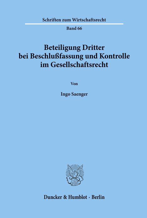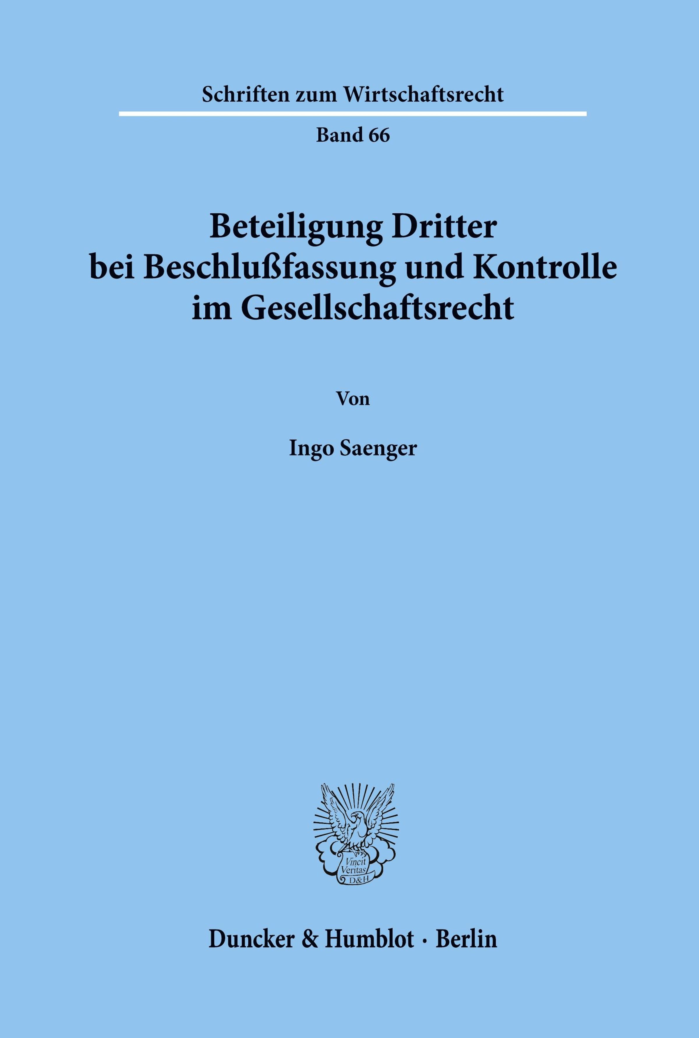 Ingo Saenger: Beteiligung Dritter bei Beschlußfassung und Kontrolle im Gesellschaftsrecht., Kartoniert / Broschiert