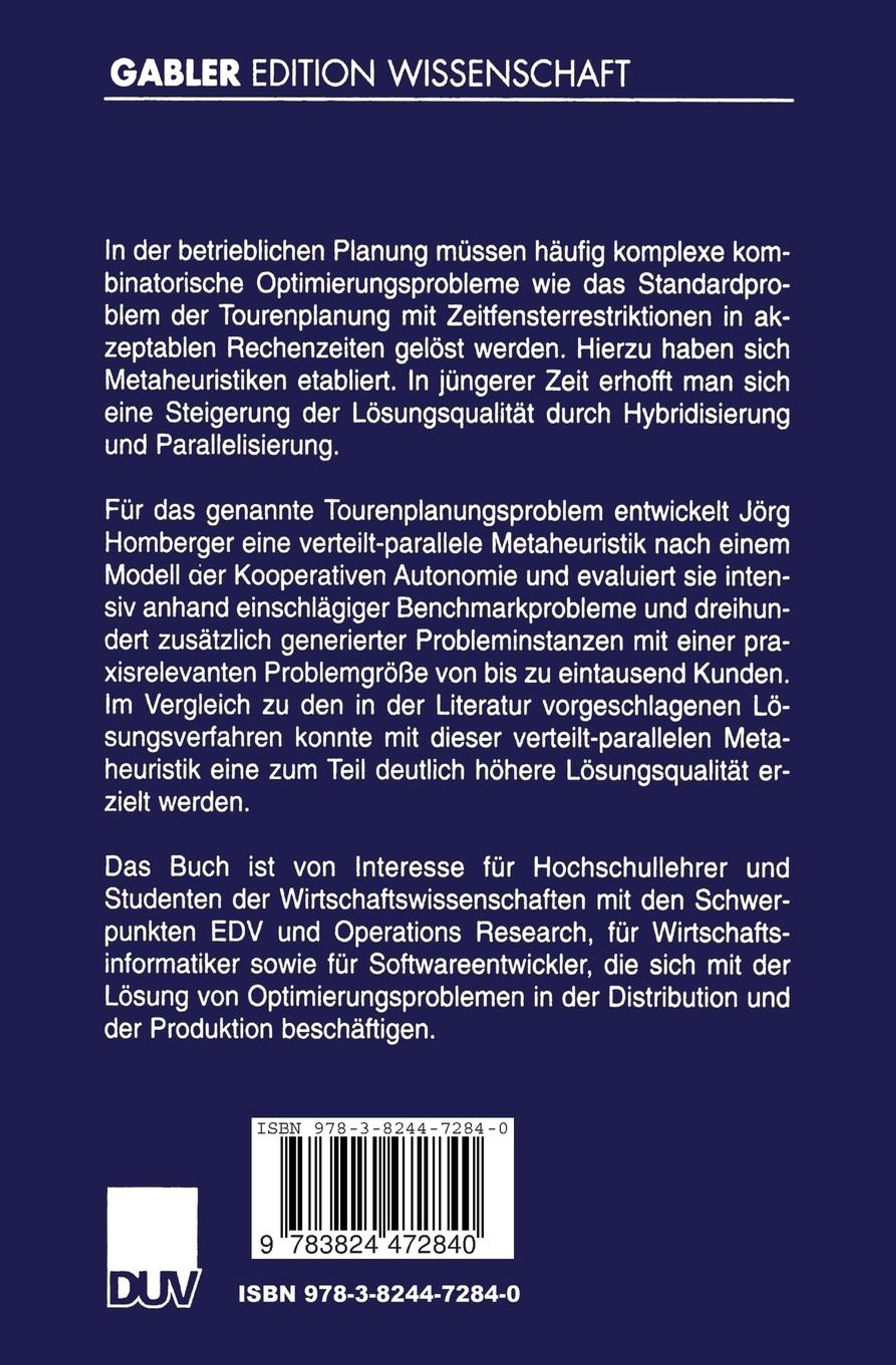 Der Artikel Jörg Homberger: Verteilt-parallele Metaheuristiken zur Tourenplanung wurde in den Warenkorb gelegt.