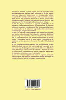 A system of philosophy of the sort presented in this and the following volumes begins with logic. Philosophy properly speaking is characterized by the kind oflogic it employs, for what it employs it assumes, however silently; and what it assumes it presupposes. The logic stands behind the ontology and is, so to speak, metaphysically prior. One word of caution. The philosophical aspects of logic have lagged behind the mathematical aspects in point of view of interest and develop ment. The work of N. Rescher and others have gone a long way to correct this. However, their work on philosophical logic has been more concerned with the logical than with the philosophical aspects. I have in mind another approach, one that would call attention to the ontological (systematic meta physics) or metaphysical (critical ontology) aspects, whichever term you prefer. It is this approach which I have pursued in the following chapters. Since together they stand at the head of a system of philosophy which has been developed in some seventeen books, a system which ranges over all of the topics of philosophy, the chosen approach can be seen as the necessary one. But I have not written any logic, I have merely indicated the sort of logic that has to be written.