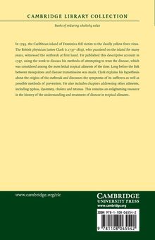 In 1793, the Caribbean island of Dominica fell victim to the deadly yellow fever virus. The British physician James Clark (c. 1737-1819), who practised on the island for many years, witnessed the outbreak at first hand. He published this descriptive account in 1797, using the work to discuss his methods of attempting to treat the disease, which was considered among the most lethal tropical ailments of the time. Long before the link between mosquitoes and disease transmission was made, Clark explains his hypothesis about the origins of the outbreak and discusses the symptoms of its sufferers as well as possible methods of prevention. He also includes chapters addressing other ailments, including typhus, dysentery, cholera and tetanus. This remains an enlightening resource in the history of the understanding and treatment of disease in tropical climates.