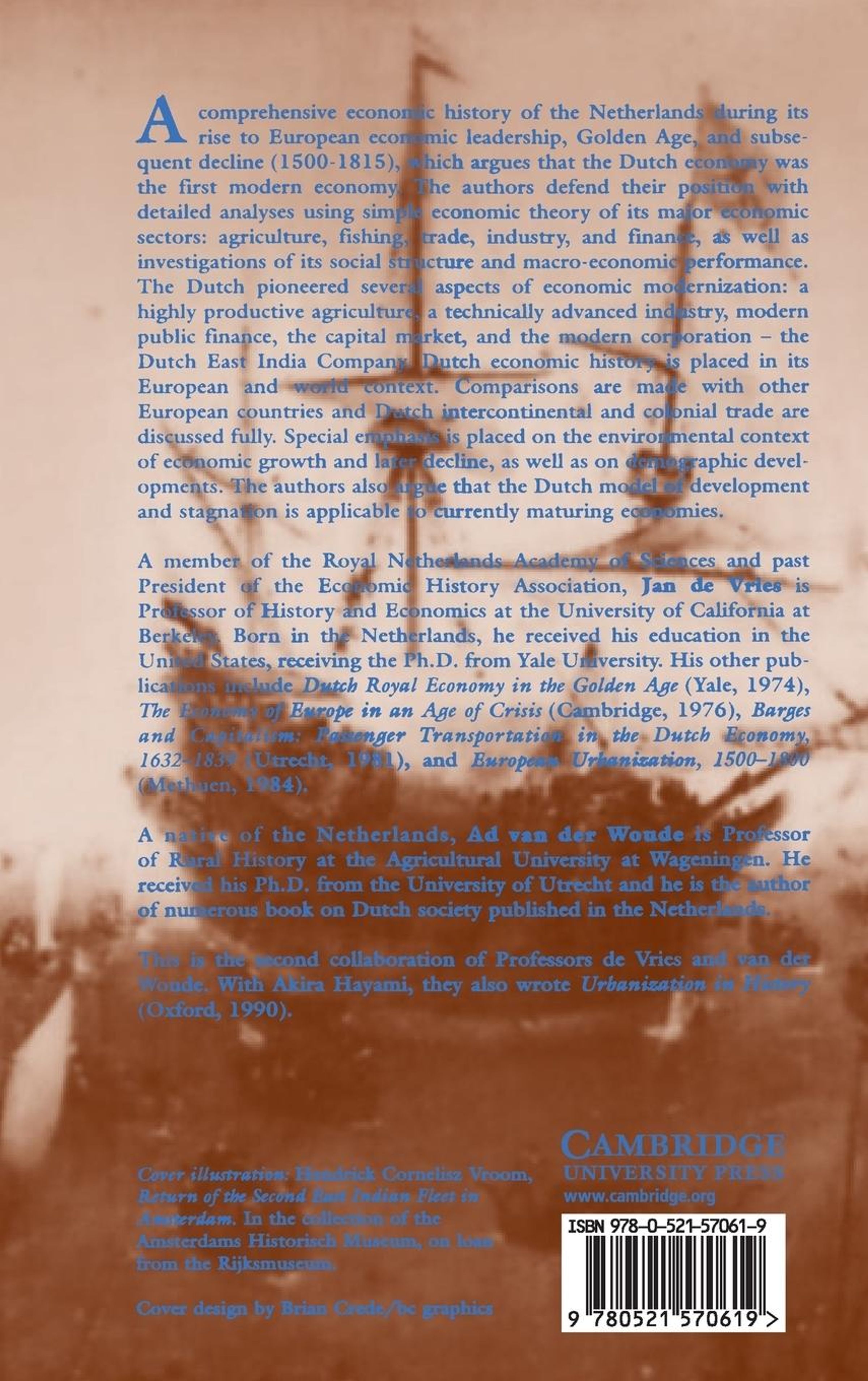 The First Modern Economy provides a comprehensive economic history of the Netherlands during its rise to European economic leadership, the 'Golden Age', and subsequent decline (1500-1815). The authors argue that it was the first modern economy, and defend their position with detailed analyses of its major economic sectors, as well as investigations of social structure and macro-economic performance. Dutch economic history is placed in its European and world context, and inter-continental and colonial trade are discussed fully. Special emphasis is placed on the environmental context of economic growth and later decline, as well as on demographic developments. The authors also argue that the Dutch model of development and stagnation is applicable to currently maturing economies.