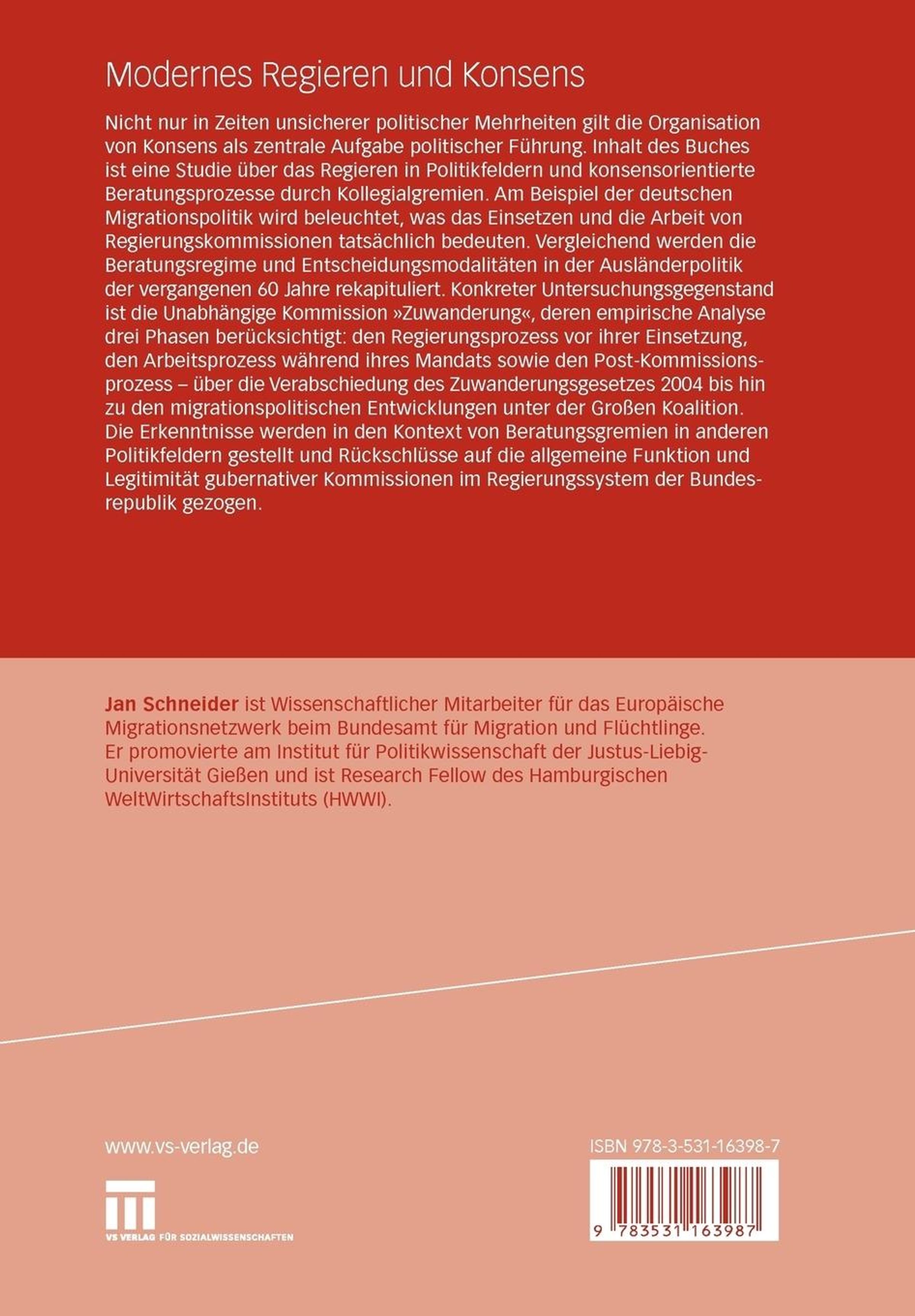 Jan Schneider: Modernes Regieren und Konsens, Buch