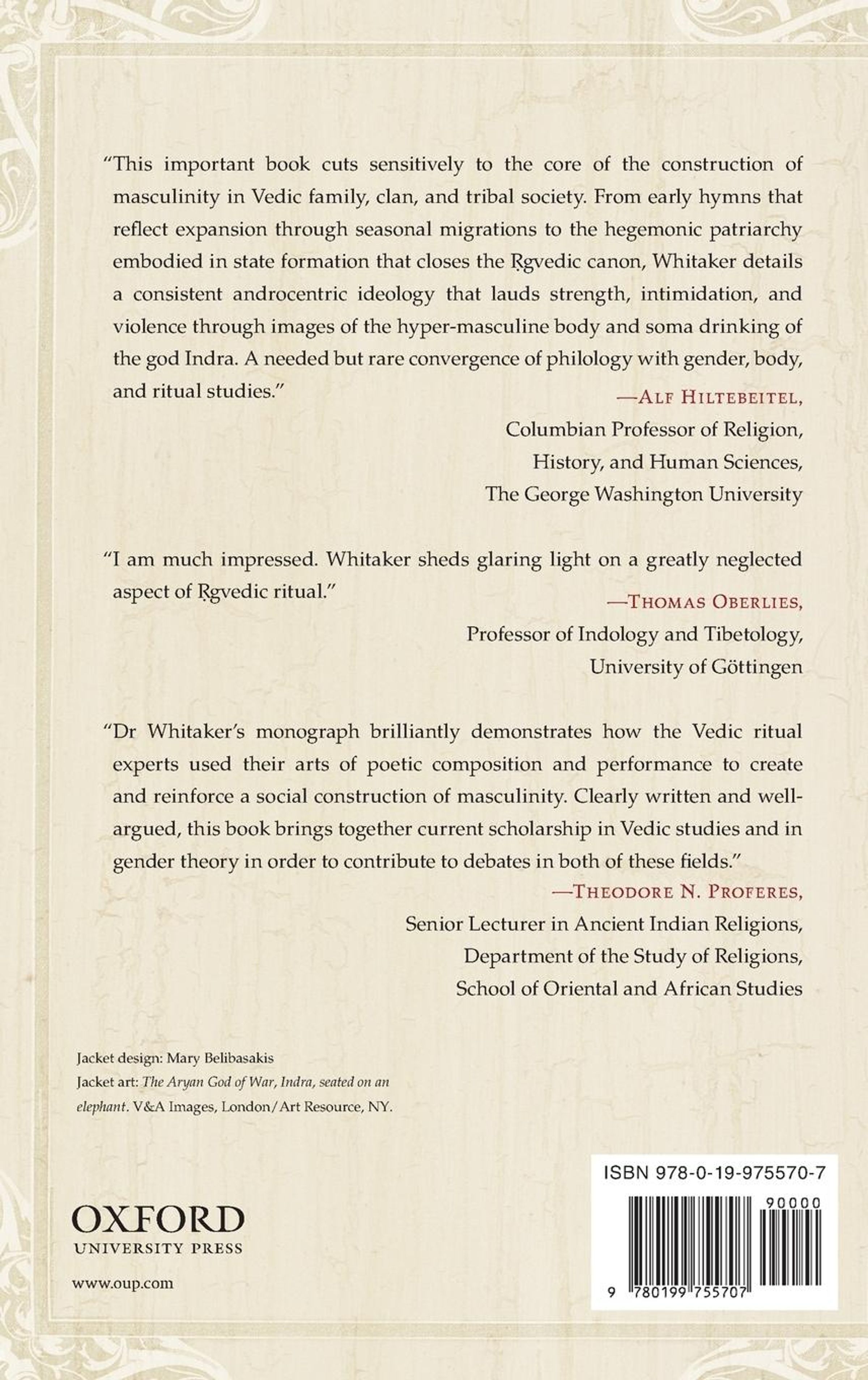 Jarrod Whitaker examines the ritualized poetic construction of male identity in the Rigveda, India's oldest Sanskrit text, arguing that an important aspect of early Vedic life involves the sustained promotion and embodiment of what it means to be a true man.
