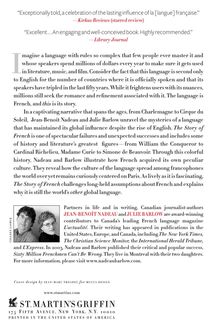 Through this colorful history, Nadeau and Barlow illustrate how French acquired its own peculiar culture, revealing how the culture of the language spread among francophones the world over and yet remains curiously centered in Paris. In fact, French is not only thriving-it still has a surprisingly strong influence on other languages.