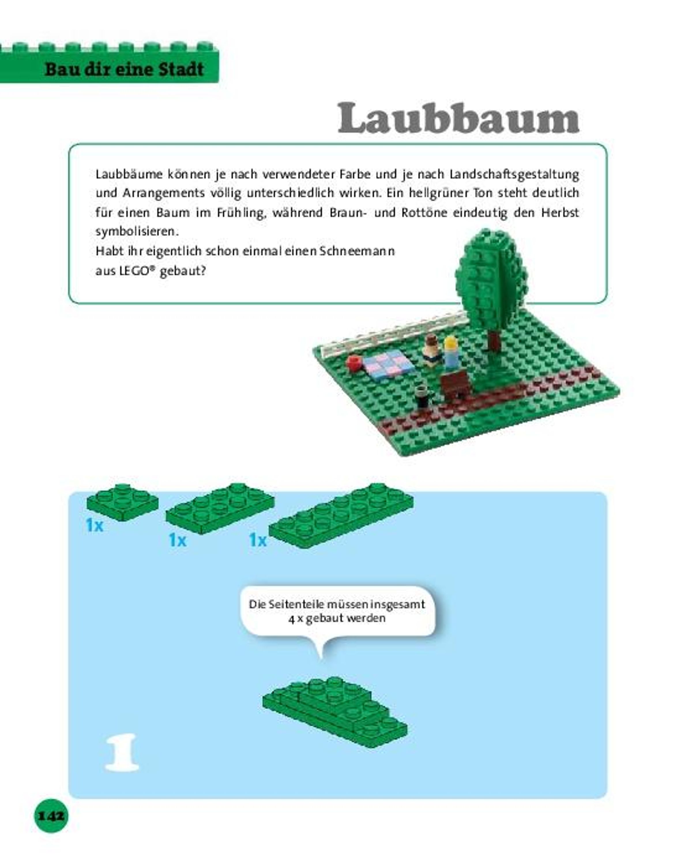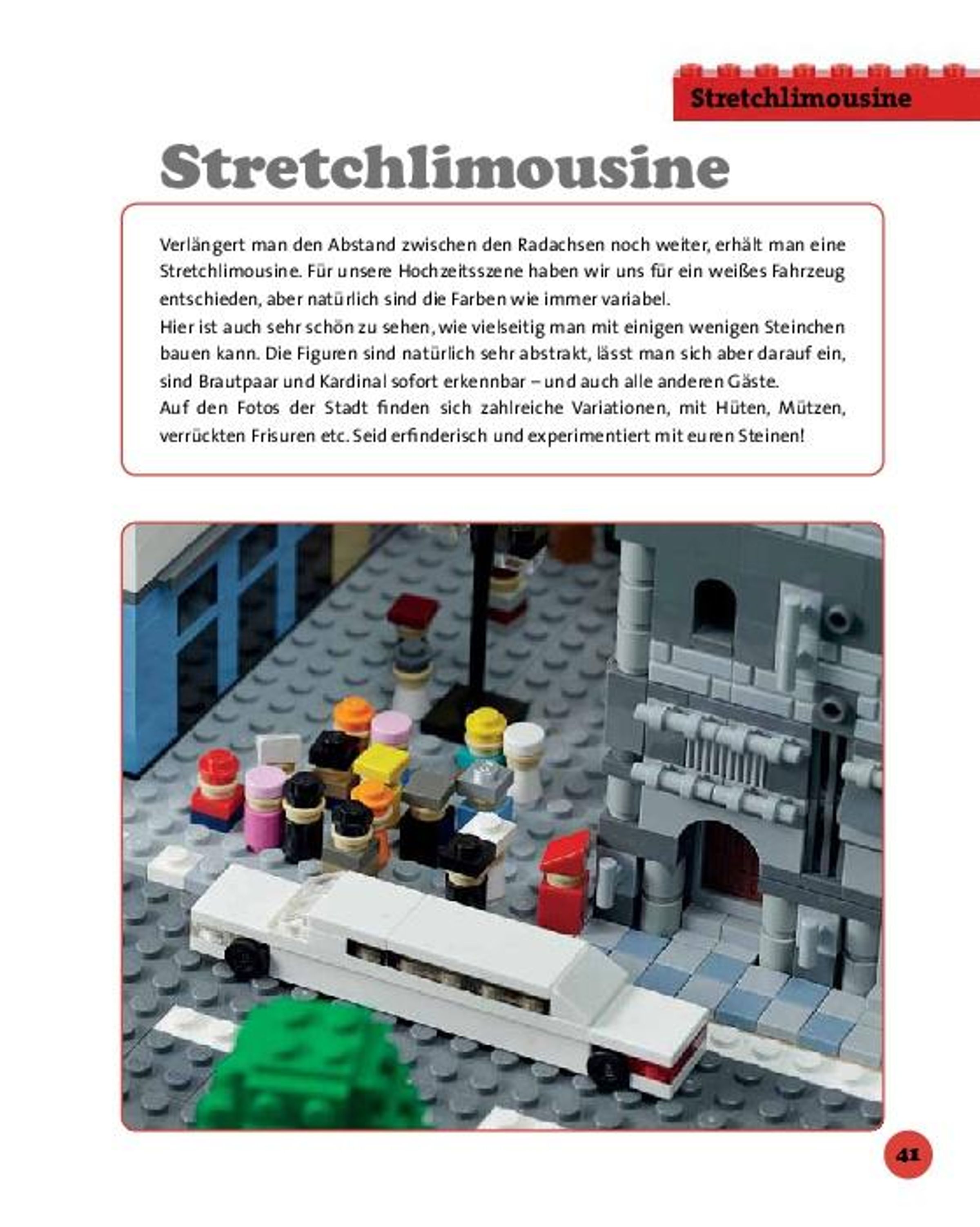 Durch die stetig wachsende Teile- und Farbenvielfalt wird es nie langweilig, sein eigener Hobby-Designer zu sein. Für manche ist es freestyle-puzzeln, für andere ein gelunger Ausgleich zum Alltagsstress. Angestachelt von den Lösungen anderer Baumeister für bautechnische Hürden und knifflige Steckverbindungen, kann LEGO® schnell zu einem platz-, zeit- und kostenintensiven Hobby werden. Umso mehr, wenn man die Begeisterung und Anerkennung für die eigenen LEGO®-Kreationen im world wide web mit anderen teilen kann. Irgendwann wird einem dann bewusst, wie sehr man von anderen Werken beeinflusst wird. So kann man manche Ideen wie z. B. die Steckverbindung für Weißwandreifen einfach nicht mehr verbessern und übernimmt sie in das eigene Repertoire. In diesem Buch zeigen wir, wie man aus einer Wühlkiste mit LEGO®-Steinen in wenigen Bauschritten erste Ergebnisse erzielen und unterschiedlichste Fahrzeuge oder Gebäude bauen kann. Einleitend erklären wir einige grundlegende Bautechniken, wie z. B. die SNOT-Technik (= Studs not on top / Noppen nicht oben), mit deren Hilfe es möglich wird, die Baurichtung zu wechseln. Der Hauptteil des Buches beschäftigt sich mit dem Thema Stadt. Dabei haben wir uns für einen verkleinerten Maßstab (von uns Midi-Maßstab genannt) entschieden, mit dem man sehr schnell erste Modelle bauen kann. Der letzte Teil des Buches richtet sich an die Profis, die bereits mehr Erfahrung haben und sich nicht scheuen, auch gezielt Einzelteile zu ihrer Sammlung hinzuzukaufen. Möglichkeiten gibt es genug (z. B. Shop@home, ebay, bricklink, LEGO®-Länder, Brandstores, Flohmärkte usw.). Hier präsentieren wir einige komplexe Modelle in teilweise seltenen Farben mit zahlreichen realistischen Details. Im Verlauf des Buches gibt es verschiedene Wege, Steckversionen und Teileverbindungen zu entdecken, die man nicht unbedingt in einer typischen Bauanleitung findet. Womöglich entsteht auch der eine oder andere Aha-Effekt, der zu eigenen ganz neuen Kreationen animiert. Natürlich wissen wir, dass die heimische LEGO®-Sammlung kaum ausreichen kann, um alles hier Gezeigte nachzubauen. Wir sind aber sicher, dass mit ein wenig Kreativität so einiges möglich ist. Spielt einfach mit den Formen und Farben und Ihr werdet schnell merken, wie viel Spaß ein eigenes Modell machen kann.
