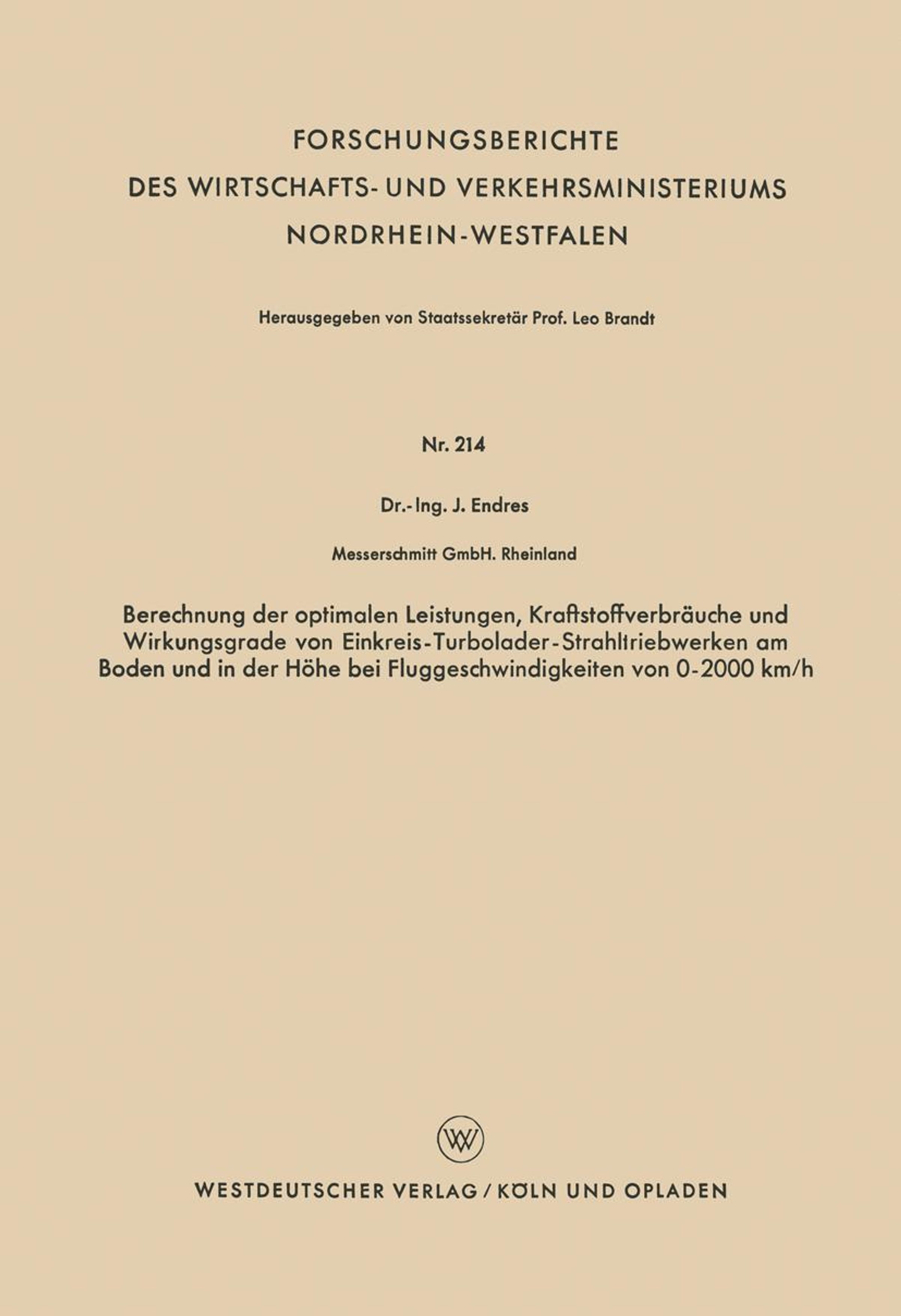 Johann Endres: Berechnung der optimalen Leistungen, Kraftstoffverbräuche und Wirkungsgrade von..., Kartoniert / Broschiert