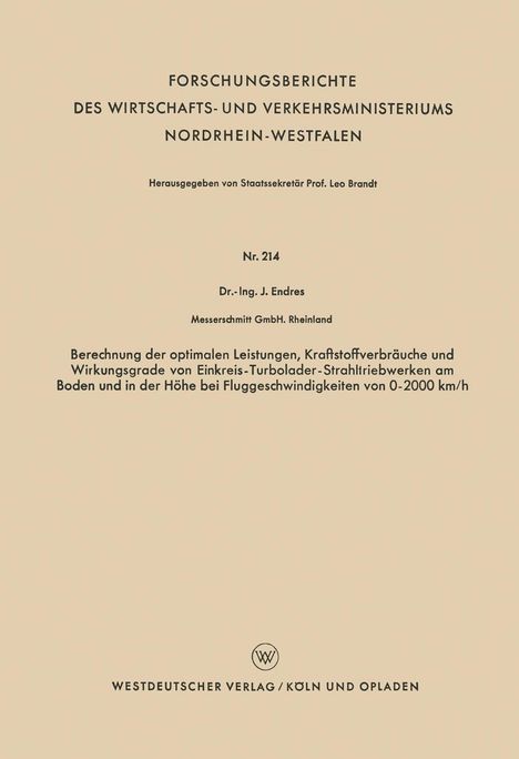Der Artikel Johann Endres: Berechnung der optimalen Leistungen, Kraftstoffverbräuche und Wirkungsgrade von Einkreis-Turbolader-Strahltriebwerken am Boden und in der Höhe bei Fluggeschwindigkeiten von 0-2000 km/h wurde in den Warenkorb gelegt.