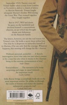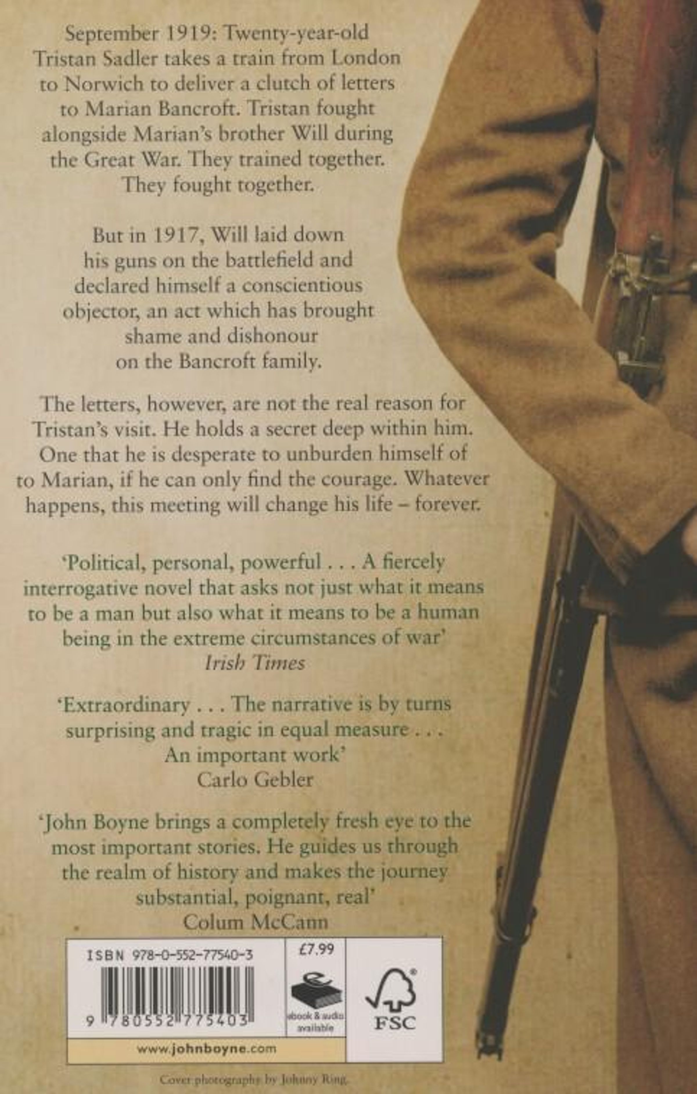 September 1919. Der 21jährige Tristan Sadler reist nach Norwich, um einige Briefe an Marian Bancroft zu überbringen. Tristan kämpfte im ersten Weltkrieg neben ihrem Bruder Will, bis sich dieser entschloss, den Kriegsdienst zu verweigern und daraufhin als Verräter erschossen wurde. Eine Tatsache, die für die Familie Scham und Ehrverlust bedeutet. Doch die Briefe sind nicht der einzige Grund für Tristans Reise, er verbirgt ein Geheimnis, welches er Marian mitteilen muss, wenn er nur den Mut aufbringt. Ein tief bewegender Roman des Autors von 'The Boy in the Striped Pyjamas'. The dazzling new novel from the bestselling author of The Boy In The Striped Pyjamas.