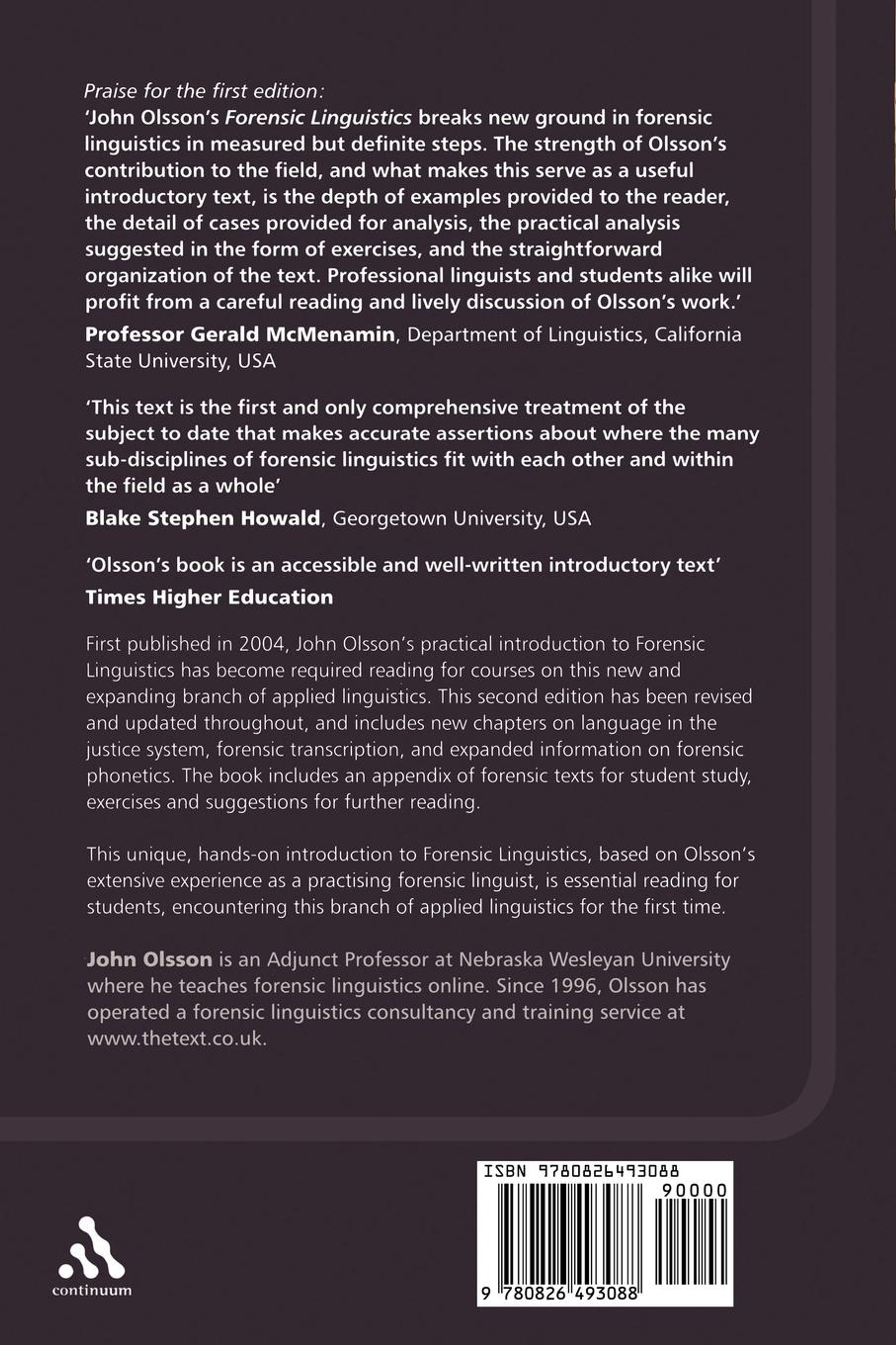 This unique, hands-on introduction to Forensic Linguistics, based on Olsson's extensive experience as a practising forensic linguist, is essential reading for students, and researchers encountering this branch of applied linguistics for the first time.