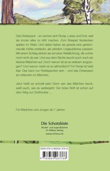 Das Dreierpack so nennen sich Ronja, Lukas und Emil, weil sie immer alles zu dritt machen. Zum Beispiel Verstecken spielen im Wald. Und dabei haben sie gerade eine geheimnisvolle Höhle entdeckt, als plötzlich Unglaubliches passiert: Mit einem Schlag stehen sie auf einer Waldlichtung, die vorher noch nicht da war. Und aus dem Nichts taucht auch noch ein kleines Mädchen auf. Doch warum ist es so seltsam angezogen? Und warum redet es so altmodisch? Für Ronja ist bald klar: Das kann nur Rotkäppchen sein und das Dreierpack ist mittendrin im Märchen.