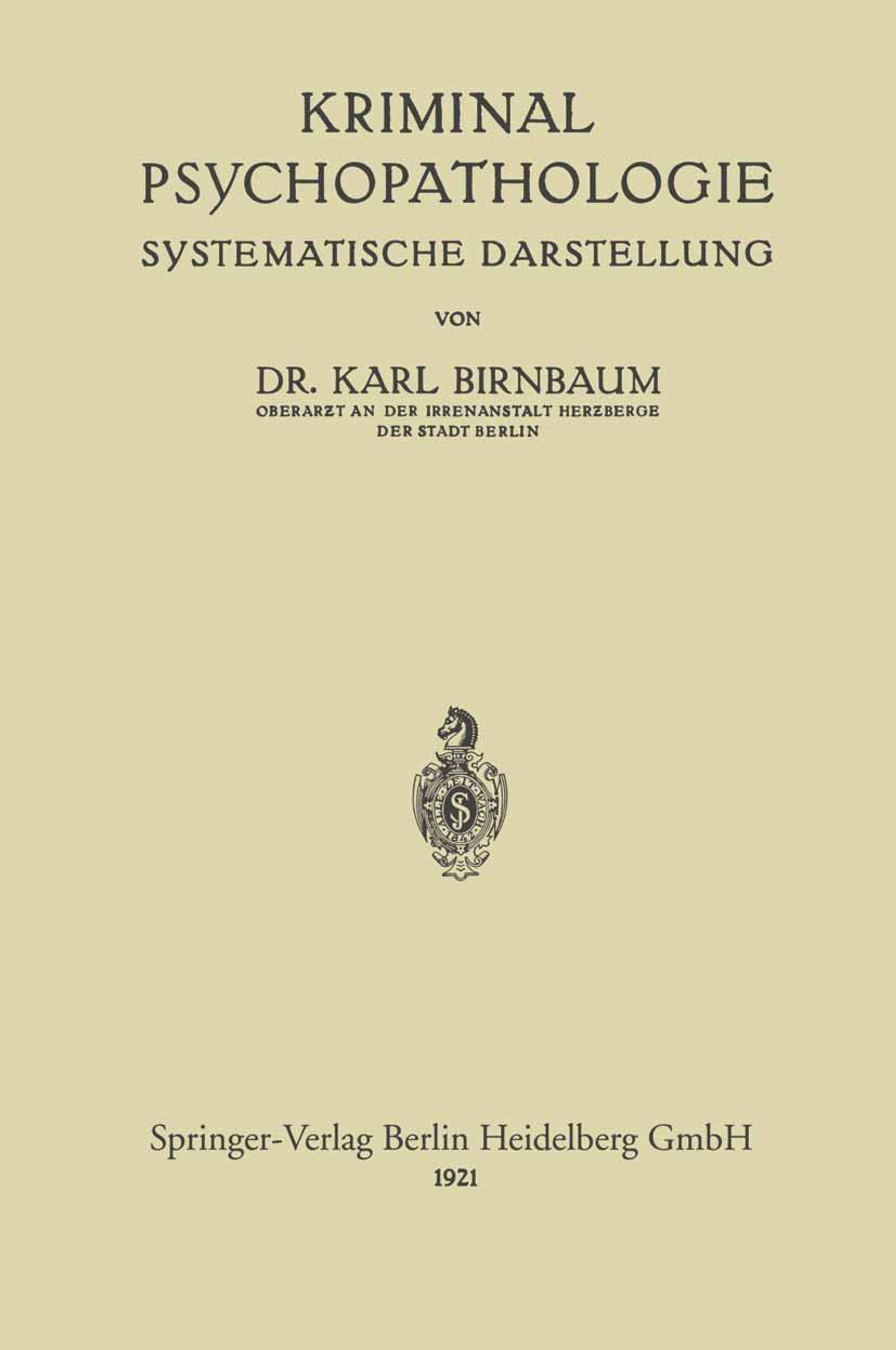 Karl Birnbaum: Kriminal-Psychopathologie, Buch, Buch