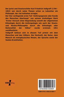 Der Jurist und Staatsrechtler Karl Friedrich Vollgraff (1794 - 1863) war durch seine Thesen schon zu Lebzeiten ein Philosoph, der viel Aufsehen erregte. Der hier vorliegende erste Teil \"Anthropognosie oder Kunde des Menschen überhaupt\" aus seinem dreiteiligen Werk \"Erster Versuch einer Begründung sowohl der allgemeinen Ethnologie durch die Anthropologie wie auch der Staats- und Rechts-Philosophie durch die Ethnologie oder Nationalität der Völker\" wurde erstmals 1851 veröffentlicht. Vollgraff befasst sich in diesem Teil primär mit dem Menschen und den Völkern. Der Herkunft, der Natur, dem Mensch als metaphysisches Wesen, der Sprache sowie der Seelen-Krankheiten.