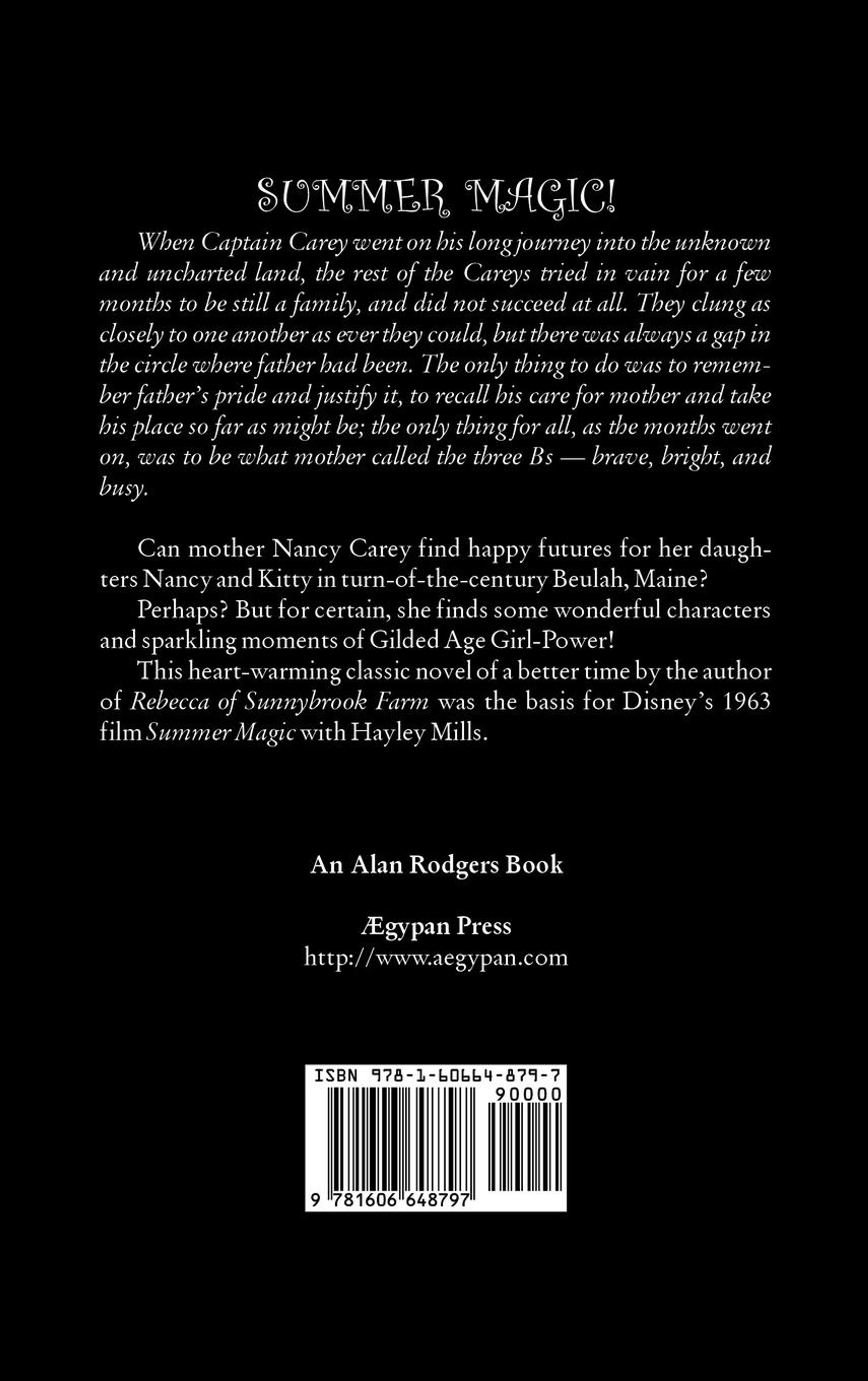 SUMMER MAGIC! When Captain Carey went on his long journey into the unknown and uncharted land, the rest of the Careys tried in vain for a few months to be still a family, and did not succeed at all. They clung as closely to one another as ever they could, but there was always a gap in the circle where father had been. The only thing to do was to remember father's pride and justify it, to recall his care for mother and take his place so far as might be; the only thing for all, as the months went on, was to be what mother called the three Bs -- brave, bright, and busy. Can mother Nancy Carey find happy futures for her daughters Nancy and Kitty in turn-of-the-century Beulah, Maine? Perhaps? But for certain, she finds some wonderful characters and sparkling moments of Gilded Age Girl-Power!