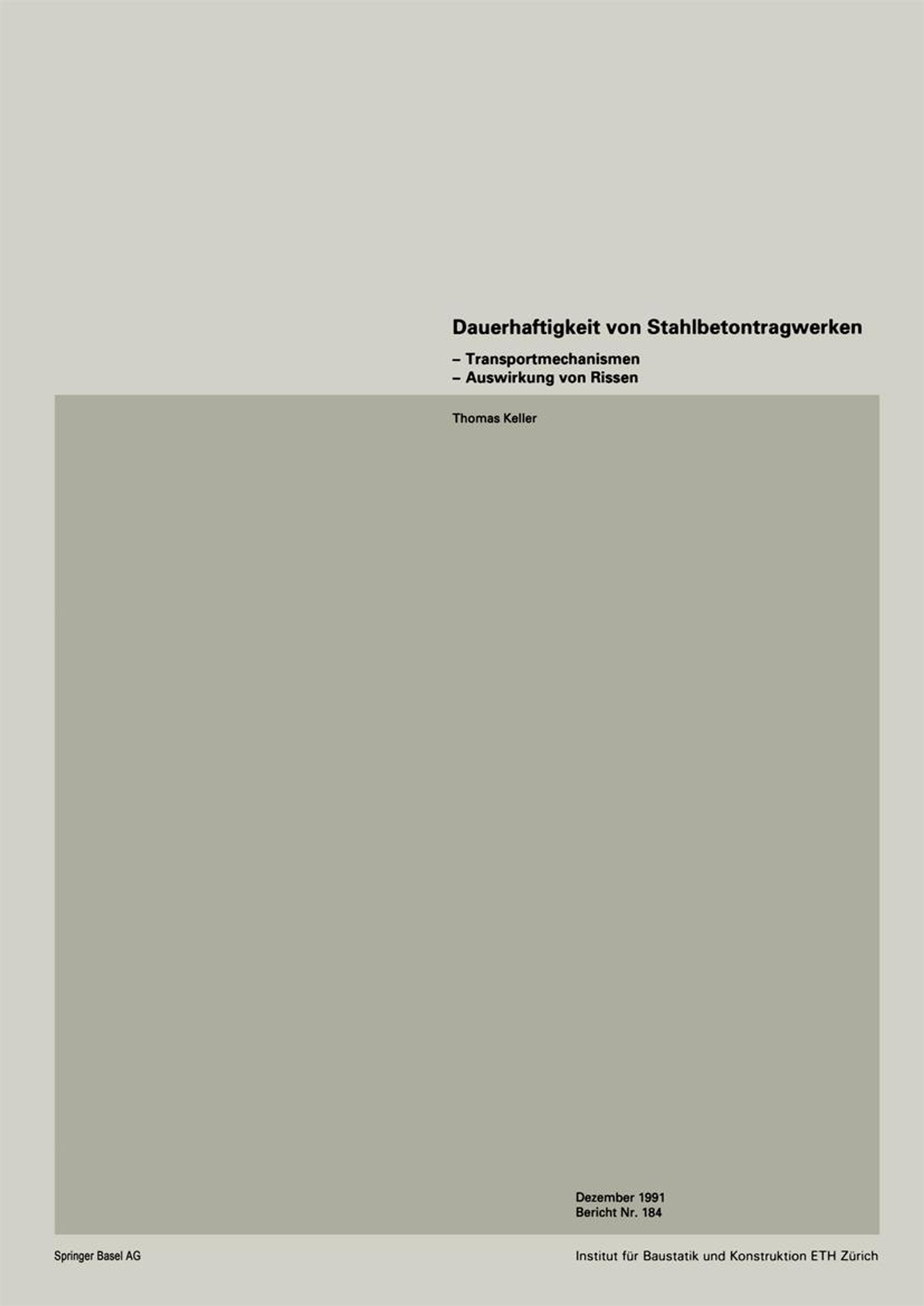 VORWORT Rissbildung ist bei Stahlbetontragwerken ein "natürliches" Phänomen. Sobald die Betonzug festigkeit überschritten wird, entstehen Risse. Risse können selbst bei Breiten von etwa 0.5 mm belanglos sein; aber es ist auch möglich, dass sie bei kleinen Breiten unerwünschte Folgen haben oder sogar Anzeichen für eine unzu reichende Tragsicherheit sind. Der verantwortungsbewusste Ingenieur überprüft deshalb beim Auftreten von Rissen immer, weshalb die Risse entstanden sind, ob sie unerwünschte Folgen haben, oder ob sie ein Anzeichen für irgendwelche Fehler in der Berechnung, Bemessung oder Ausführung sind. Der Einfluss der Risse auf die Korrosion der Bewehrung bzw. die Dauerhaftigkeit des Trag werkes ist ein altes, umstrittenes Thema. Selbstverständlich spielen diesbezüglich die Um weltbedingungen eine wichtige Rolle; aber ein direkter Zusammenhang zwischen Rissbreite und Korrosion, unter Berücksichtigung der Umweltbedingungen, liess sich trotz aller Be mühungen nie feststellen. Trotzdem messen immer noch viele Normen -u. a. auch die Norm SIA 162 -der Berechnung bzw. Beschränkung der Rissbreite eine zentrale Bedeutung bei. Dies führt unter Umständen zu einem unnötigen, unwirtschaftlichen Bewehrungsaufwand .. Es ist ganz offensichtlich, dass die Korrosion im Rissbereich vom Zusammenwirken zahlreicher Parameter abhängig ist. Mit Laborversuchen lassen sich zwar die Auswirkungen einzelner Parameter mit grosser Genauigkeit verfolgen, und es können auch entsprechende Berech nungsmodelle entwickelt werden. Aber die Interaktion aller Parameter unter der Berück sichtigung zeitabhängiger Phänomene, wie z. B. die Strukturänderung des Betons mit zu nehmendem Alter, oder etwa die natürlichen Feuchtigkeitszyklen, lassen sich zur Zeit noch nicht mit der erwünschten Zuverlässigkeit in Berechnungsmodellen erfassen.
