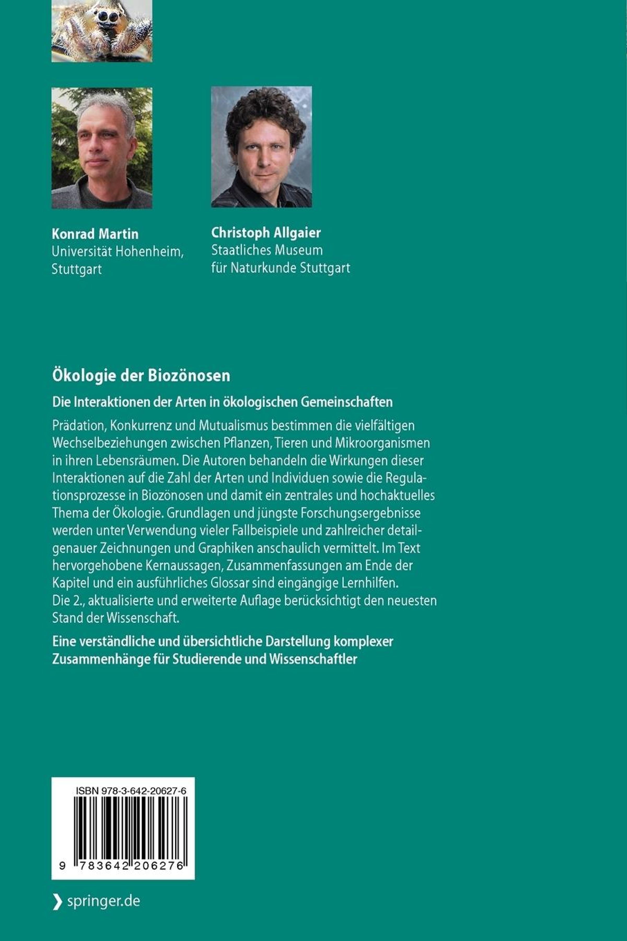 Die Interaktionen der Arten in ökologischen Gemeinschaften Phytophagie, Prädation, Konkurrenz und Mutualismus bestimmen die vielfältigen Wechselbeziehungen zwischen Pflanzen, Tieren und Mikroorganismen in ihren Lebensräumen. Die Autoren behandeln die Wirkungen dieser Interaktionen auf die Zahl der Arten und Individuen sowie die Regulationsprozesse in Biozönosen und damit ein zentrales und hochaktuelles Thema der Ökologie. Grundlagen und jüngste Forschungsergebnisse werden unter Verwendung vieler Fallbeispiele und zahlreicher detailgenauer Zeichnungen und Graphiken anschaulich vermittelt. Im Text hervorgehobene Kernaussagen, Zusammenfassungen am Ende der Kapitel und ein ausführliches Glossar sind eingängige Lernhilfen. Die 2., aktualisierte und erweiterte Auflage berücksichtigt den neuesten Stand der Wissenschaft. Eine verständliche und übersichtliche Darstellung komplexer Zusammenhänge für Studierende und Wissenschaftler