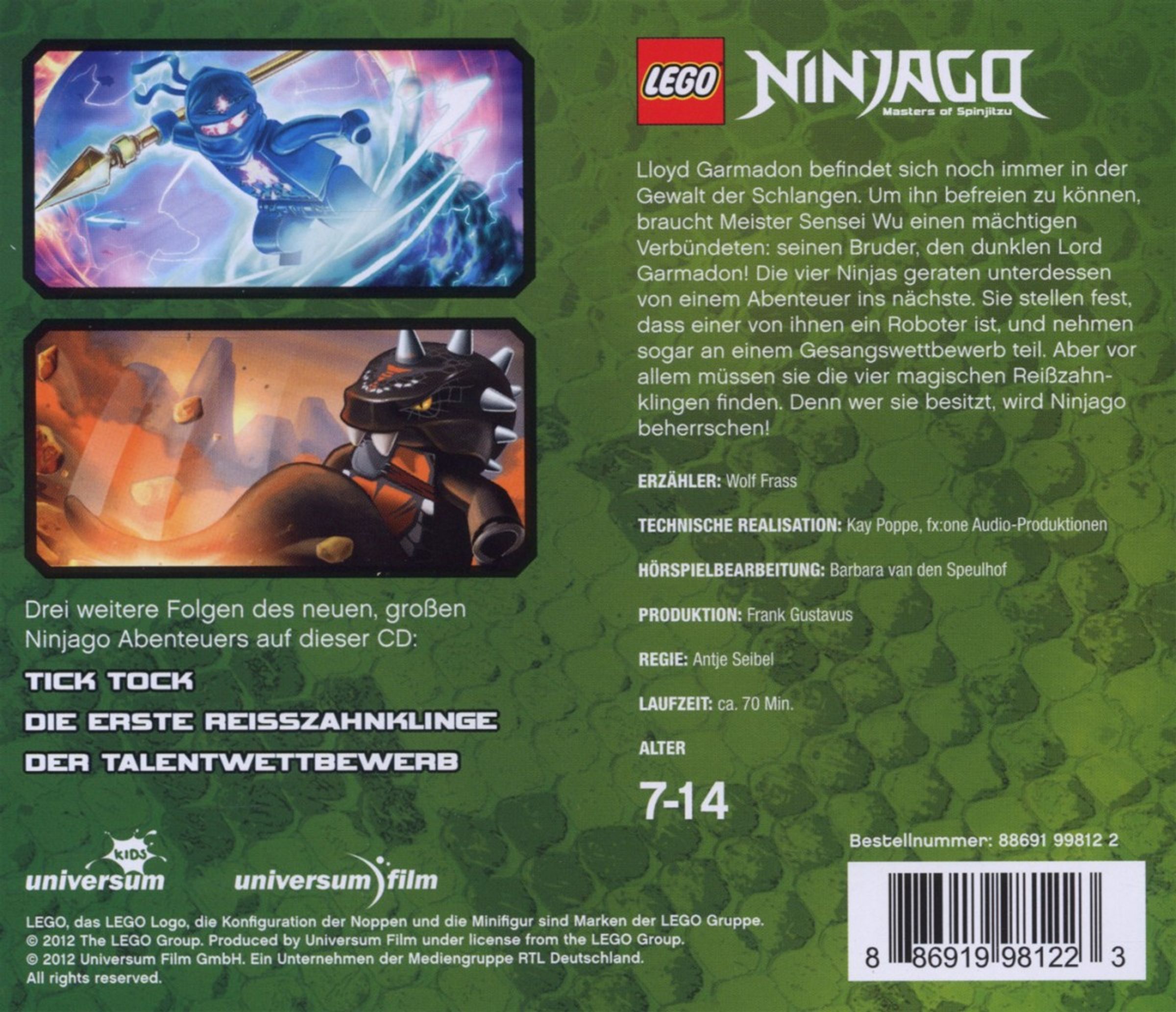 Meister Sensei Wu und seine vier jungen Ninja-Lehrlingeerleben neue spannende Abenteuer in der Weltvon LEGO Ninjago. Nach einer Zeit des Friedens in Ninjago treffen die vier Ninja-Helden aufeinen neuen, extrem gefährlichen Widersacher: Lloyd Garmadon, Sohnihres Erzfeindes Lord Garmadon, hat vier uralte Schlangenstämme entfesselt. Kreaturen, die über magische Waffen und Kräfte verfügen. Auch die Ninjas erliegen beinahe der Macht der Schlangen. Nachdemihr Kloster zerstört wurde, müssen sie sich eine neue Heimat und neueFortbewegungsmittel suchen. Ihr neues Hauptquartier ist ein verlassenesSchiff, das in eine fliegende Festung verwandelt werden kann. Doch einealte Legende spaltet die vier Ninjas: Nur ein einziger Ninja, so heißt es, wird sich als grüner Ninja über die anderen erheben doch wer wird dassein?