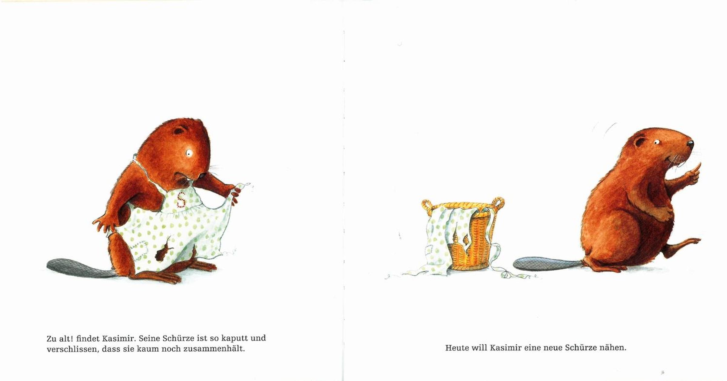 In "Kasimir näht" entführt Lars Klinting junge Leserinnen und Leser in die Welt des geschickten Biber Kasimir, der vor der Herausforderung steht, sich eine neue Schürze zu nähen. Seine alte Schürze ist verschlissen, und so beschließt er, selbst tätig zu werden. Vom Auswählen des Stoffes über das Waschen, Bügeln, Messen bis hin zum Zuschneiden und Nähen - Schritt für Schritt folgen wir Kasimir auf seinem Weg zur selbstgemachten Schürze. Die Geschichte wird durch einfache, klare Sprache und liebevolle Illustrationen lebendig und bietet nebenbei praktische Nähtipps und ein Schnittmuster. Dieses Buch ist nicht nur eine Anleitung zum Nähen, sondern auch eine Ermutigung, neue Dinge selbst auszuprobieren.