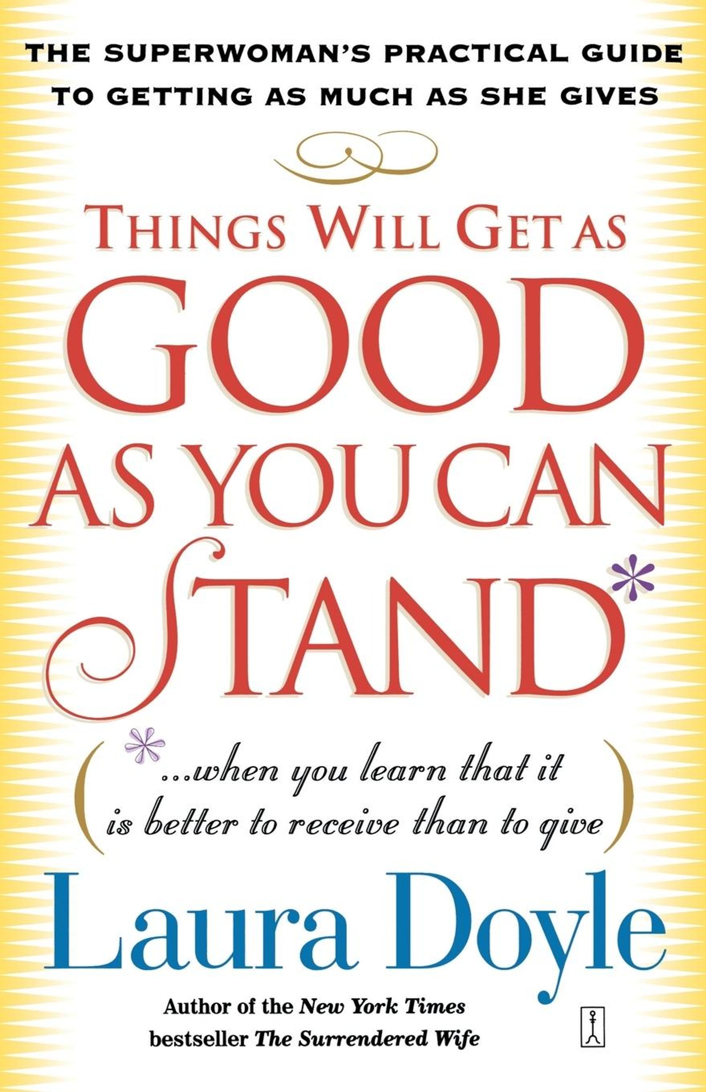 In Things Will Get as Good as You Can Stand , bestselling author and intimacy expert Laura Doyle says that all of these things are available but receiving them makes women feel uncomfortable. Women will dismiss praise at work, turn away help with the house, and reject expressions of admiration so that they can appear to be in control, independent, and strong. They believe accepting help would be perceived as weakness. The result is a Superwoman Syndrome---women who are overworked, exhausted, and lonely.