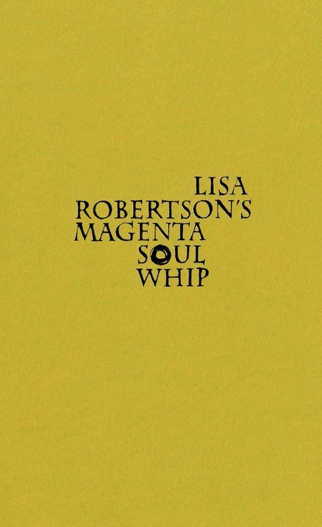 A "New York Times" 100 Notable Book and longlisted for the Warwick Writing Prize, "Lisa Robertson's Magenta Soul Whip" collects occasional works written over the past fifteen years, turning vestige into architecture, chagrin into resplendence. In them, we recognize our grand, saddened century.