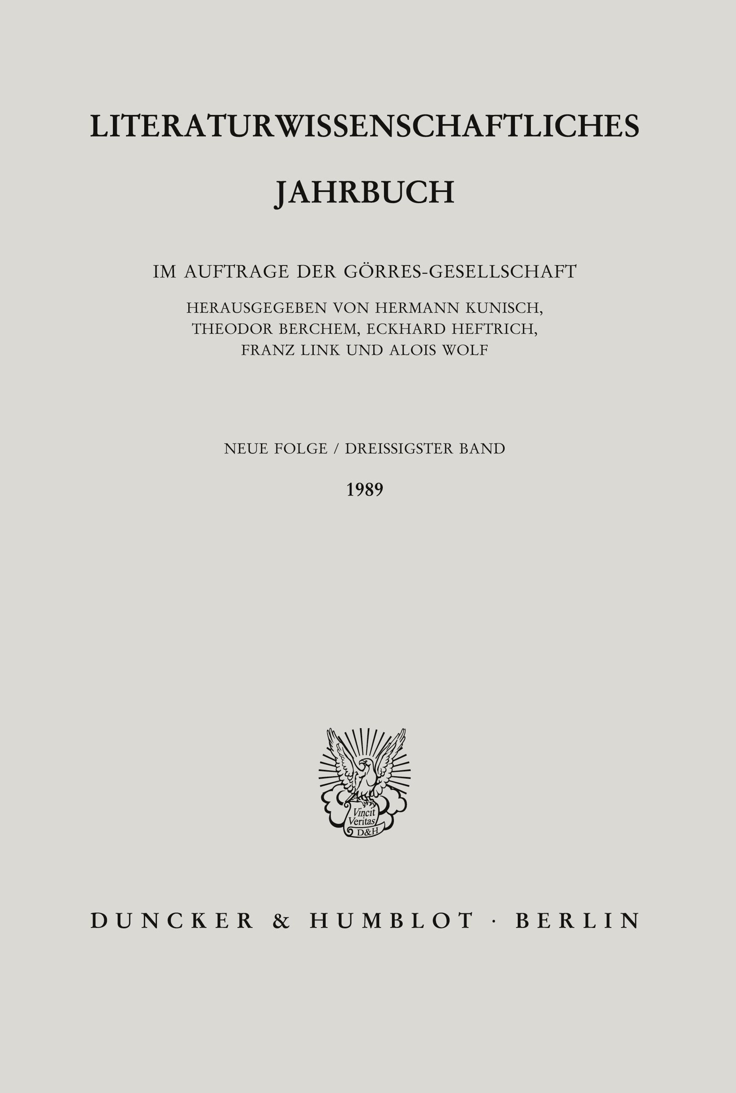 Weitere Ausgaben von Literaturwissenschaftliches Jahrbuch. |
