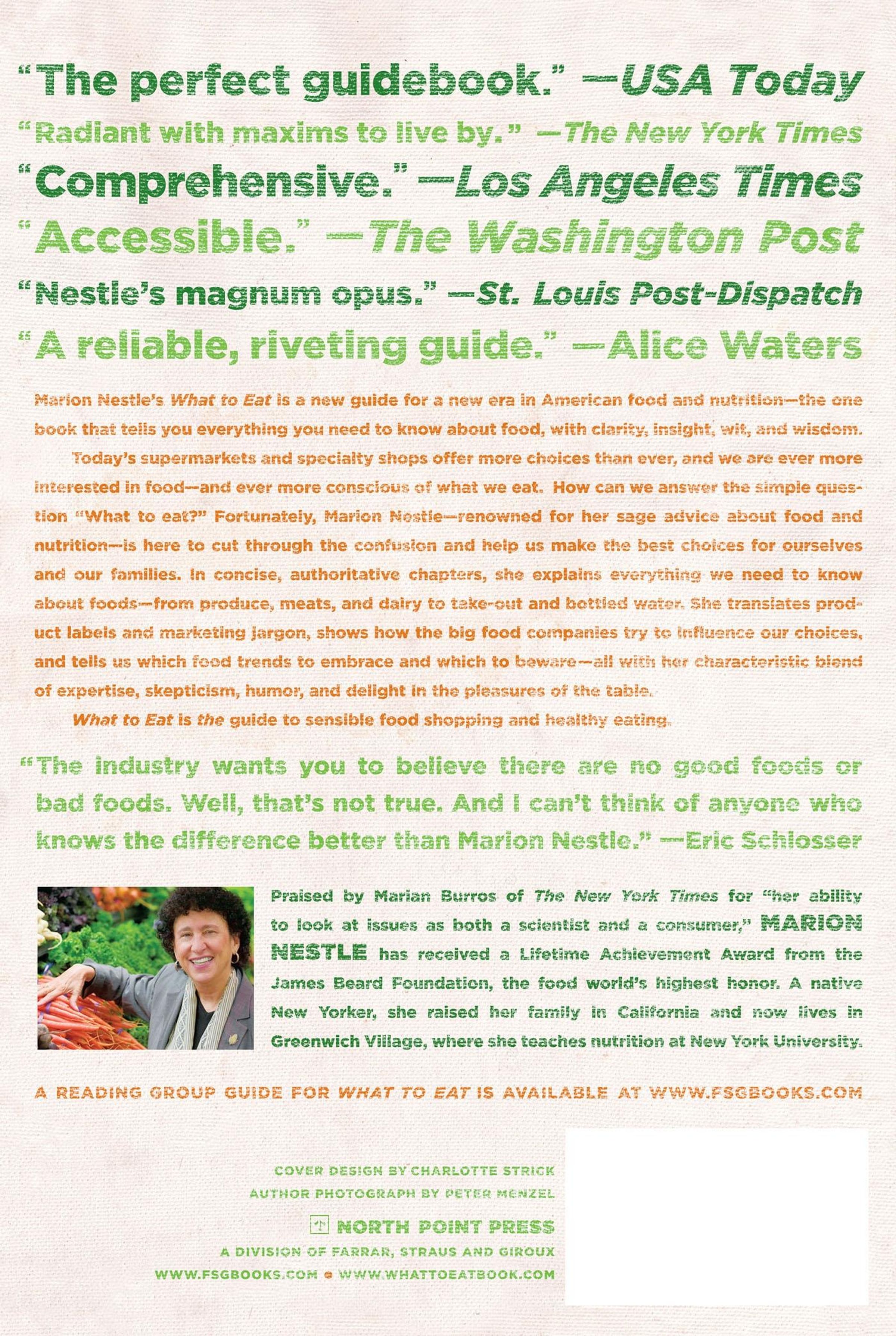Since its publication in 2006, Marion Nestle's What to Eat has become the definitive guide to making healthy and informed choices about food. Praised as "radiant with maxims to live by" in The New York Times Book Review and "accessible, reliable and comprehensive" in The Washington Post , What to Eat is an indispensable resource, packed with important information and useful advice from the acclaimed nutritionist who "has become to the food industry what . . . Ralph Nader [was] to the automobile industry" (St. Louis Post-Dispatch ).