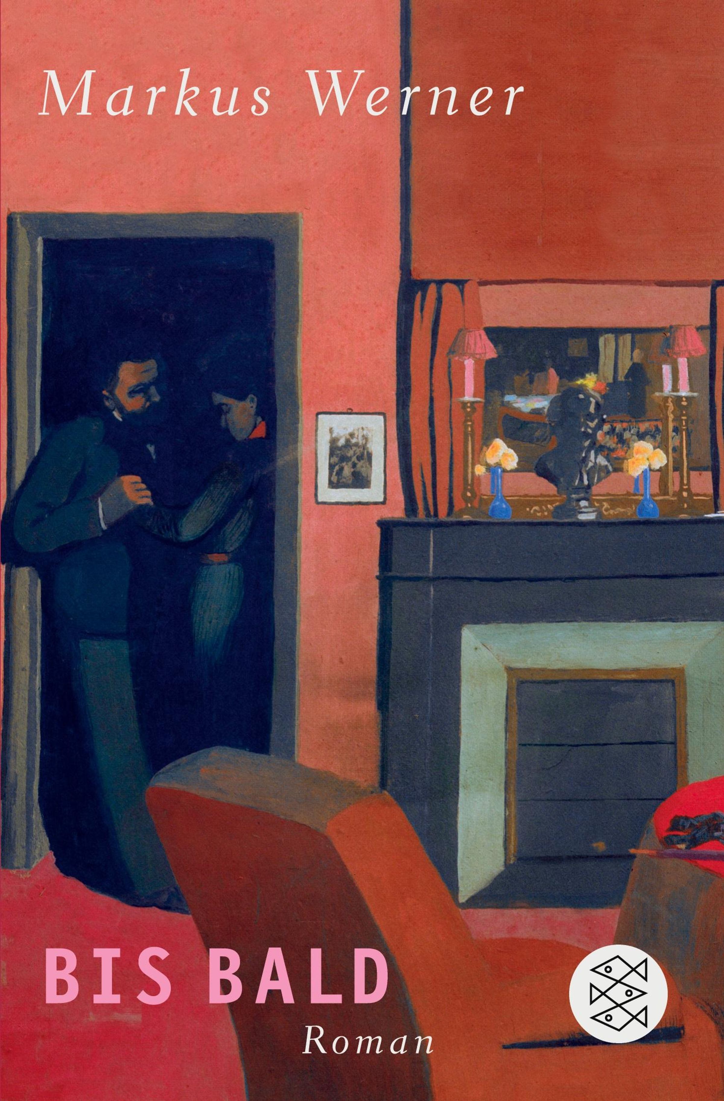 Text: "Markus Werner", "BIS BALD", "Roman". Illustration: Innenraum mit Personen in dunklen Farben, Kamin und Dekorationen., Buch