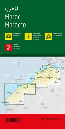 freytag & berndt Autokarten sind für viele Länder und Regionen weltweit erhältlich. Neben der übersichtlichen Gestaltung verfügt die Straßenkarte Marokko 1: 800.00 - 1: 2 Mio. über zahlreiche Zusatzinformationen wie z. B. Straßenbeschaffenheit, Innenstadtpläne und Sehenswürdigkeiten. Mit dem umfangreichen Ortsregister gelingt zudem eine rasche Orientierung. Touristische Informationen, Ortsregister mit Postleitzahlen, Citypläne: Casablanca, Fes, Marrakech, Rabat / Salé, Tanger;