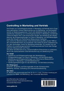 Gestaltung und Erfolgsauswirkungen der Absatzplanung; Erfolgsauswirkungen von Slack in Marketing- und Vertriebsbudgets; Gestaltung und Erfolgsauswirkungen von Performance; Measurement Systemen in Marketing- und Vertriebsbereichen; Handlungsempfehlungen für das Marketing- und Vertriebscontrolling von Unternehmen