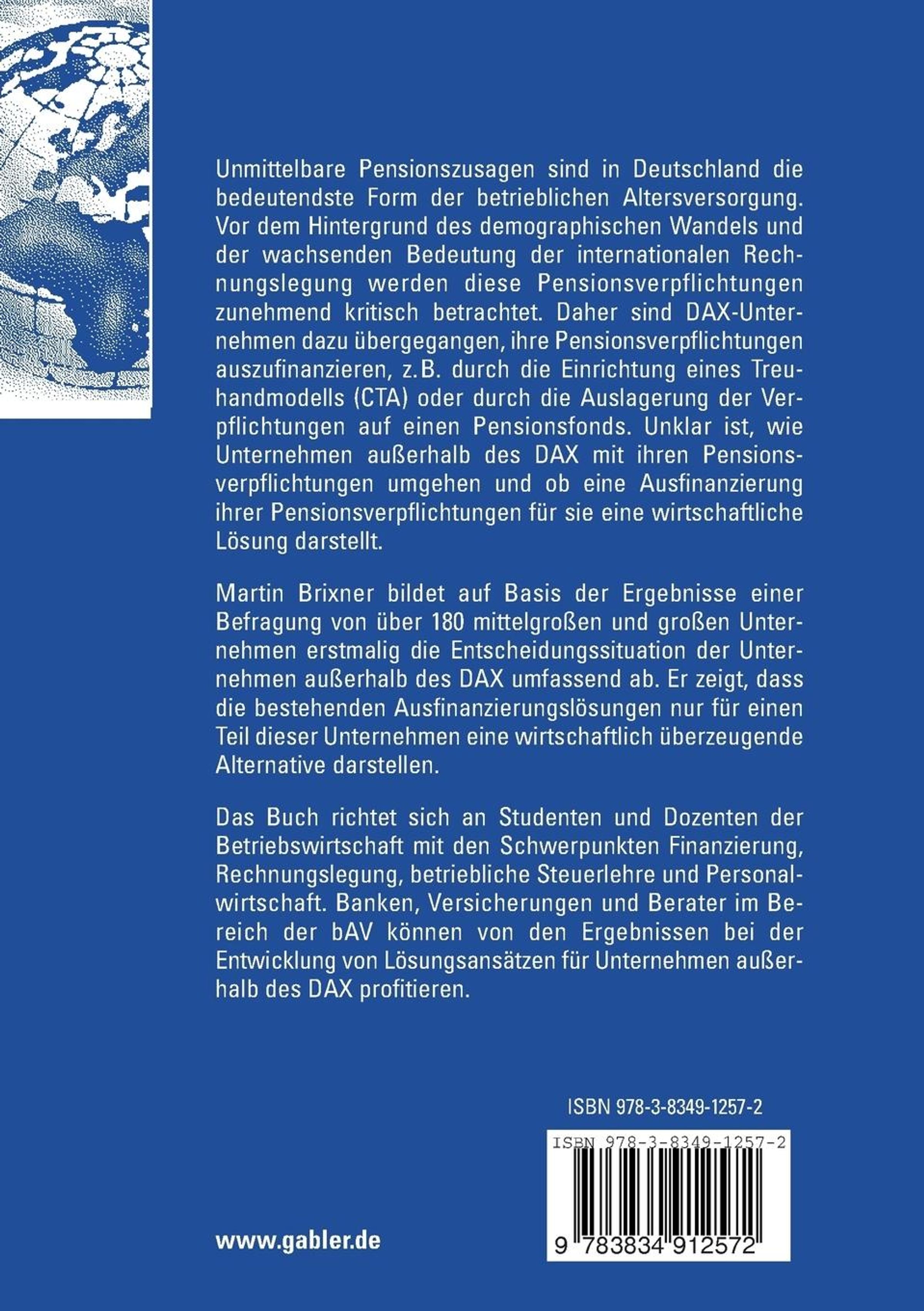 Die betriebliche Altersversorgung kann in Deutschland auf eine lange Tradition zurückblicken. War sie zu Beginn in erster Linie durch den Wunsch des Arbeit- bers geprägt, soziale Verantwortung zu übernehmen, so hat sie sich im Laufe der Zeit zu einem wesentlichen Bestandteil der Gesamtentlohnung entwickelt. Dieser Wandel spiegelt sich bei der Art der Zusage und der Finanzierung der Leistungen wider. Innerhalb der letzten Jahre haben bei den Neuzusagen beitragsorientierte Pläne stark an Bedeutung gewonnen, welche oftmals komplett oder teilweise über einen externen Versorgungsträger ?nanziert werden. Betrachtet man jedoch den Umfang der bestehenden Verp?ichtungen wird de- lich, dass die unmittelbare Versorgungszusage nach wie vor die bedeutendste Durchführungsform der betrieblichen Altersversorgung ist. Mittlerweile wird diese Form der betrieblichen Altersversorgung zunehmend kritisch beurteilt, insbesondere die bilanziellen Auswirkungen der Direktzusagen und die - triebsfremden Risiken, die sich aus der Pensionszusage ergeben. Vor diesem Hintergrund sahen sich insbesondere die DAX-Unternehmen veranlasst, die Finanzierung ihrer Pensionsverp?ichtungen grundsätzlich zu überdenken. Ein Großteil der DAX-Unternehmen hat in Konsequenz Maßnahmen ergriffen, seine Pensionsverp?ichtungen aus Direktzusagen auszu?nanzieren, z. B. über die A- lagerung auf einen Pensionsfonds oder über die Nutzung eines Treuhandmodells. Verfolgt man die Diskussion in Wissenschaft und Praxis über das Für und - der der Aus?nanzierung der Pensionsverp?ichtungen, so stehen hierbei die großen börsennotierten Unternehmen im Mittelpunkt. Vergegenwärtigt man sich, dass auch mittelständische Unternehmen beträchtliche Pensionsverp?ichtungen eingegangen sind, so erscheint esunumgänglich, diese in die Diskussion ein- beziehen. Aufgrund der schlechteren Datenlage für diese Unternehmen wurde der Mittelstand jedoch bisher in dieser Diskussion nicht erfasst.