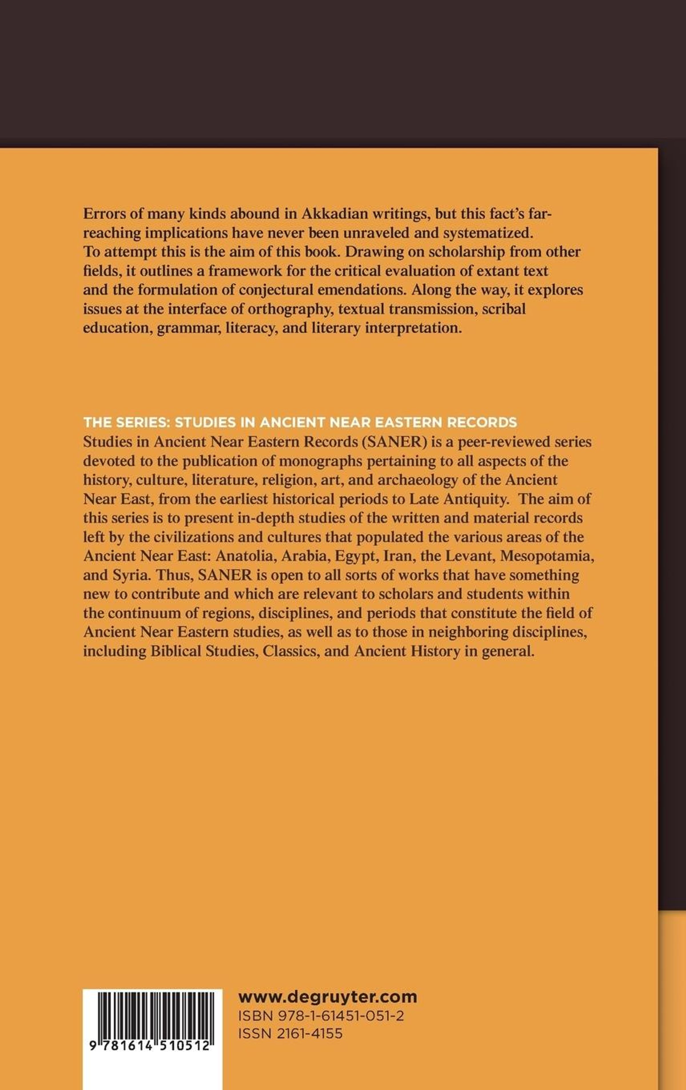Errors of many kinds abound in Akkadian writings, but this fact s far-reaching implications have never been unraveled and systematized. To attempt this is the aim of this book. Drawing on scholarship from other fields, it outlines a framework for the critical evaluation of extant text and the formulation of conjectural emendations. Along the way, it explores issues at the interface of orthography, textual transmission, scribal education, grammar, literacy, and literary interpretation.