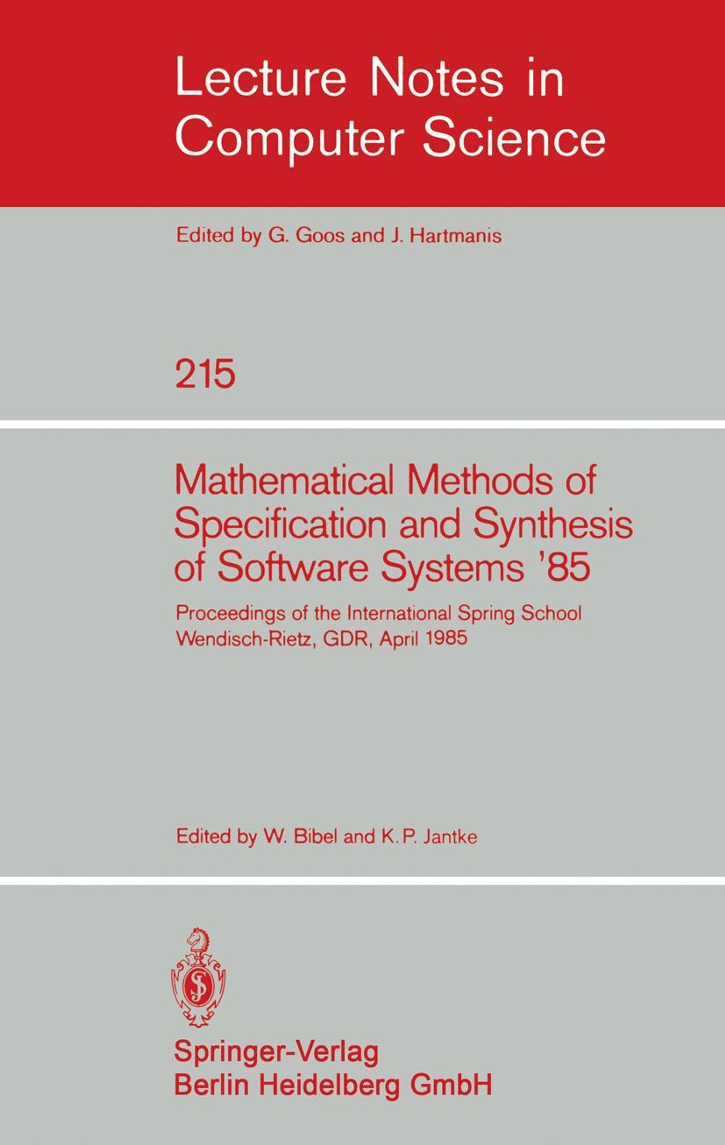 Mathematical Methods of Specification and Synthesis of Software Systems '85
