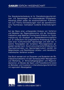 Auf der Basis einer umfassenden Analyse von Verfahren und Modellen der Regionalökonomie und der Handelsbetriebslehre zeigt Matthias Zimmermann Kriterien zur Systematisierung von Ansätzen zur Standortbestimmungslehre auf und verdeutlicht ihre pragmatische Anwendung am Beispiel einer multifunktionalen Sportanlage.