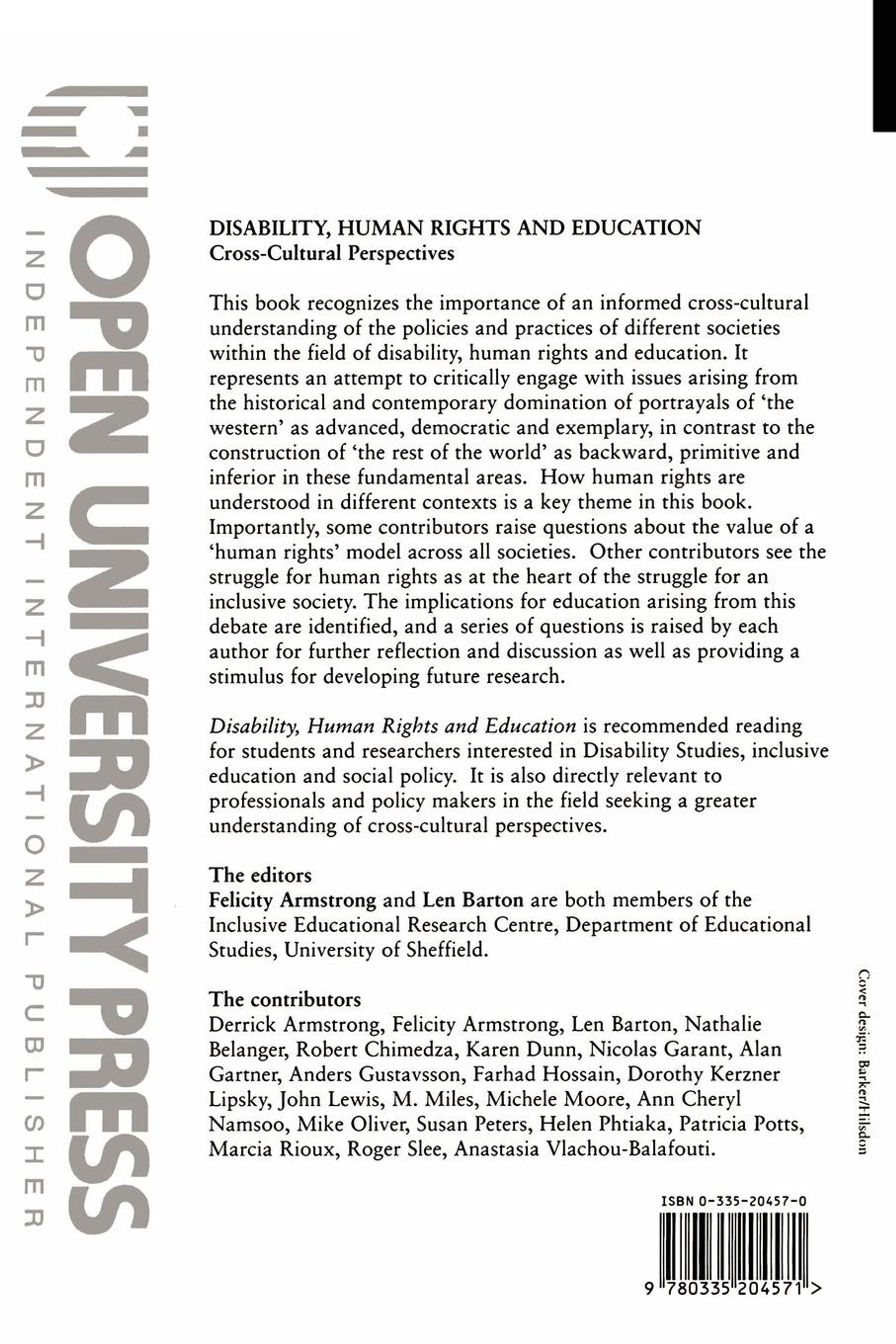 Disability, Human Rights and Education is recommended reading for students and researchers interested in Disability Studies, inclusive education and social policy. It is also directly relevant to professionals and policy makers in the field seeking a greater understanding of cross-cultural perspectives.