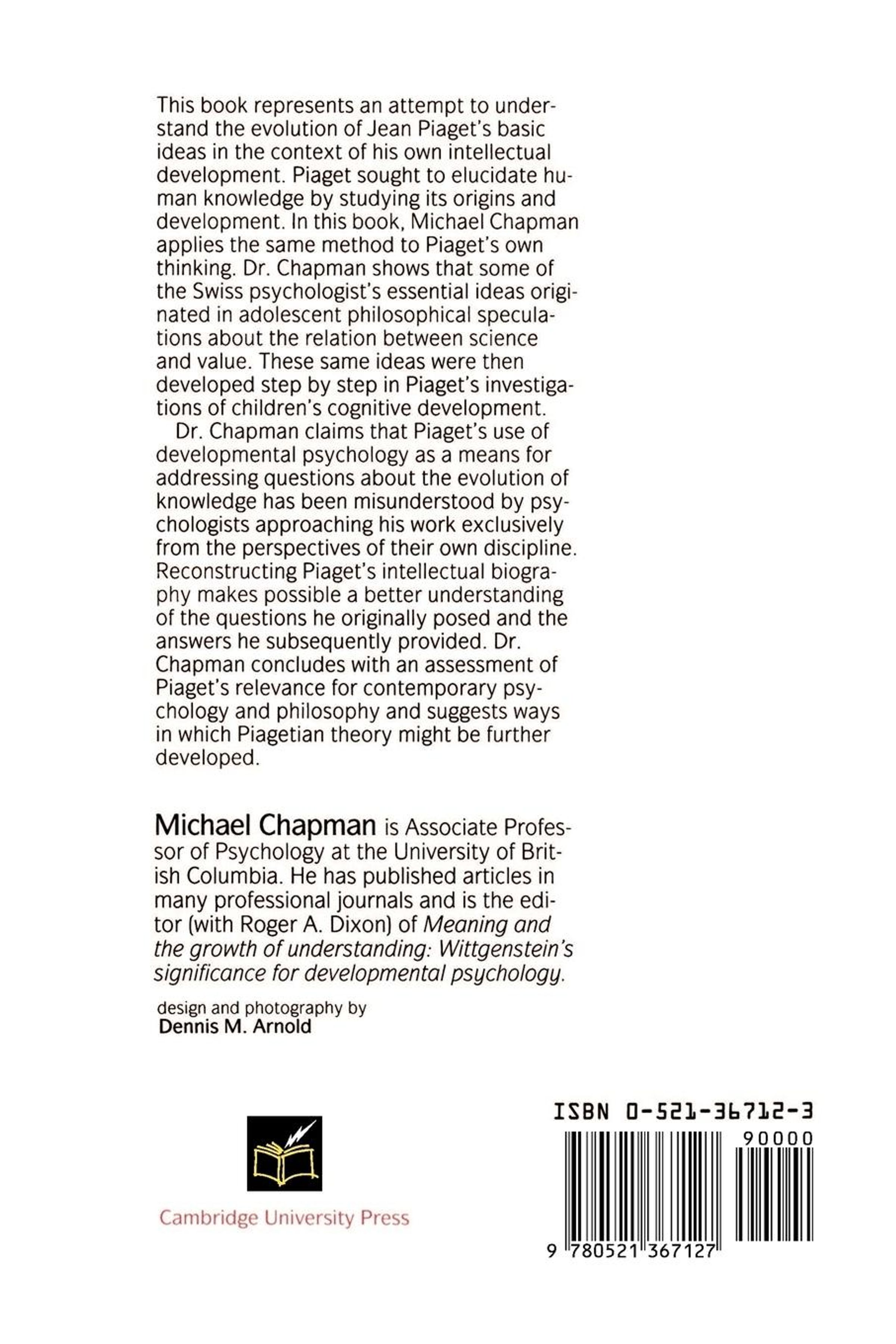 This book represents an attempt to understand the evolution of Jean Piaget's basic ideas in the context of his own intellectual development. Piaget sought to elucidate human knowledge by studying its origins and development. In this book, Michael Chapman applies the same method to Piaget's own thinking. Dr. Chapman shows that some of the Swiss psychologist's essential ideas originated in adolescent philosophical speculations about the relation between science and value. These same ideas were then developed step by step in Piaget's investigations of children's cognitive development. Dr. Chapman claims that Piaget's use of developmental psychology as a means for addressing questions about the evolution of knowledge has been misunderstood by psychologists approaching his work exclusively from the perspectives of their own discipline. Reconstructing Piaget's intellectual biography makes possible a better understanding of the questions he originally posed and the answers he subsequently provided. Dr. Chapman concludes with an assessment of Piaget's relevance for contemporary psychology and philosophy and suggests ways in which Piagetian theory might be further developed.