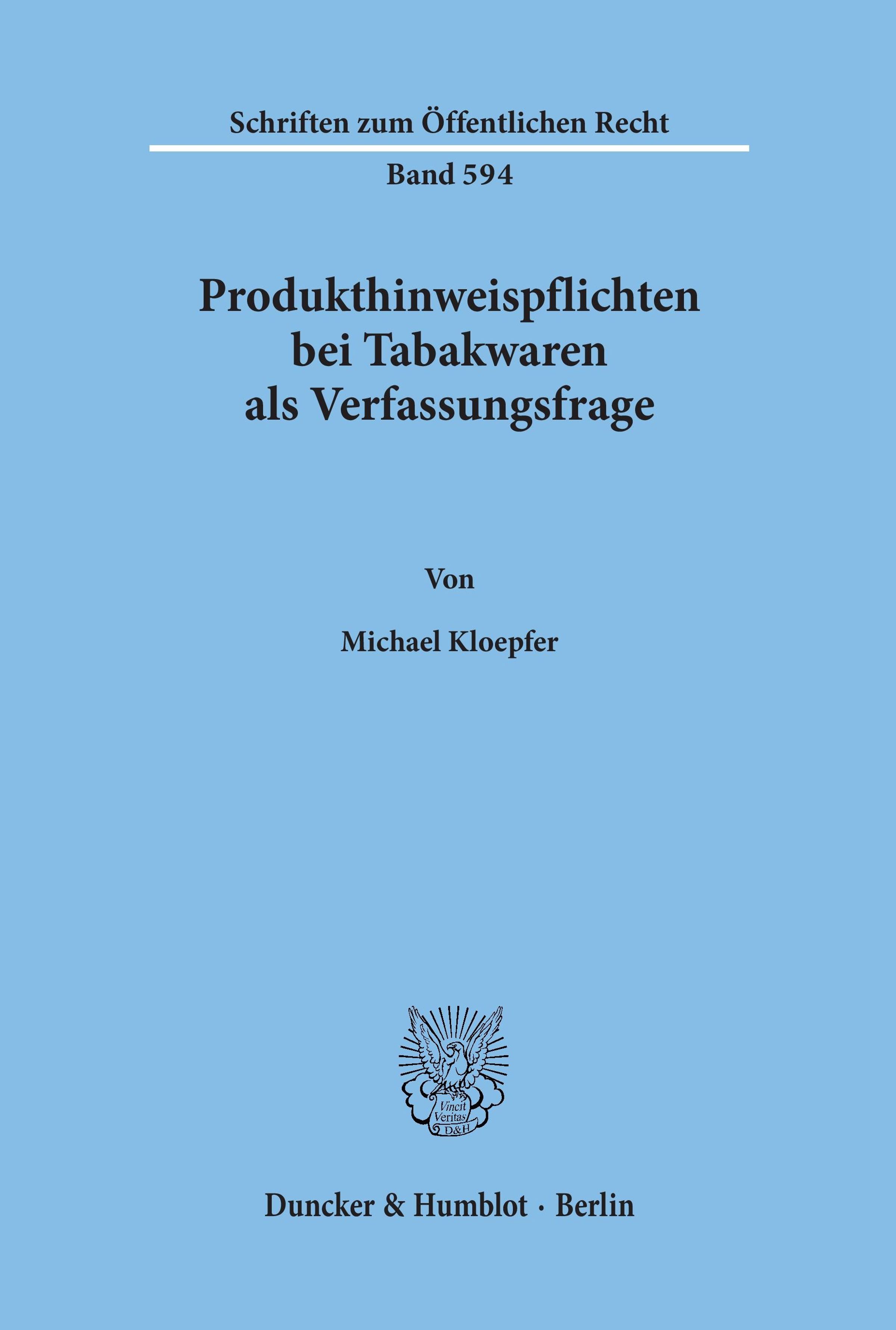 Michael Kloepfer: Produkthinweispflichten bei Tabakwaren als Verfassungsfrage., Kartoniert / Broschiert