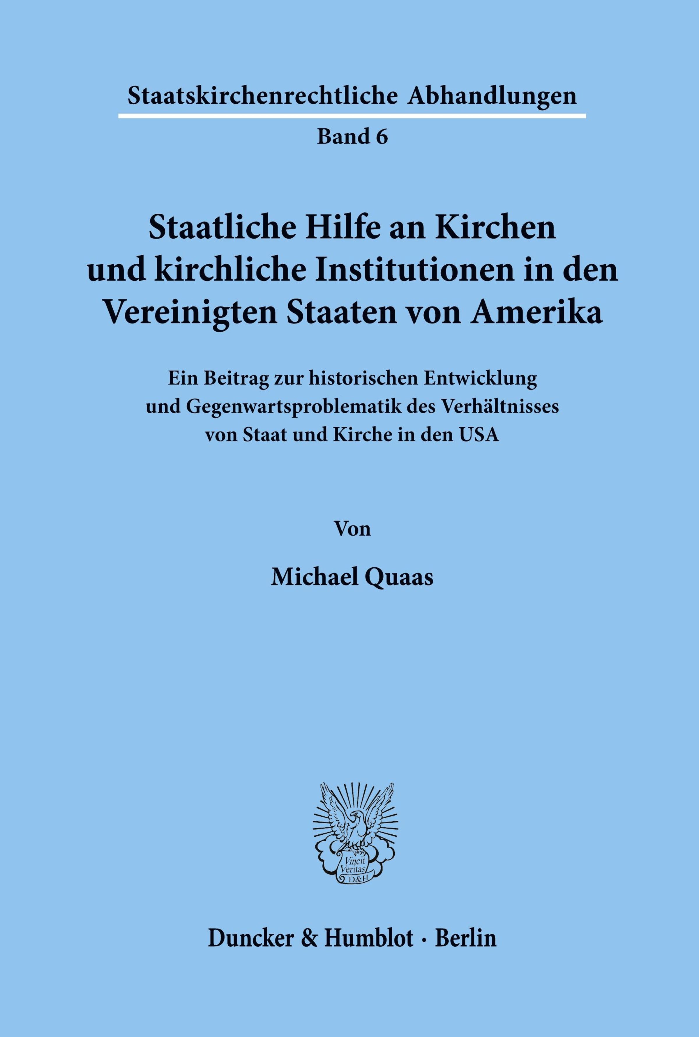 Michael Quaas: Staatliche Hilfe an Kirchen und kirchliche Institutionen in den Vereinigten Staaten von Amerika., Kartoniert / Broschiert