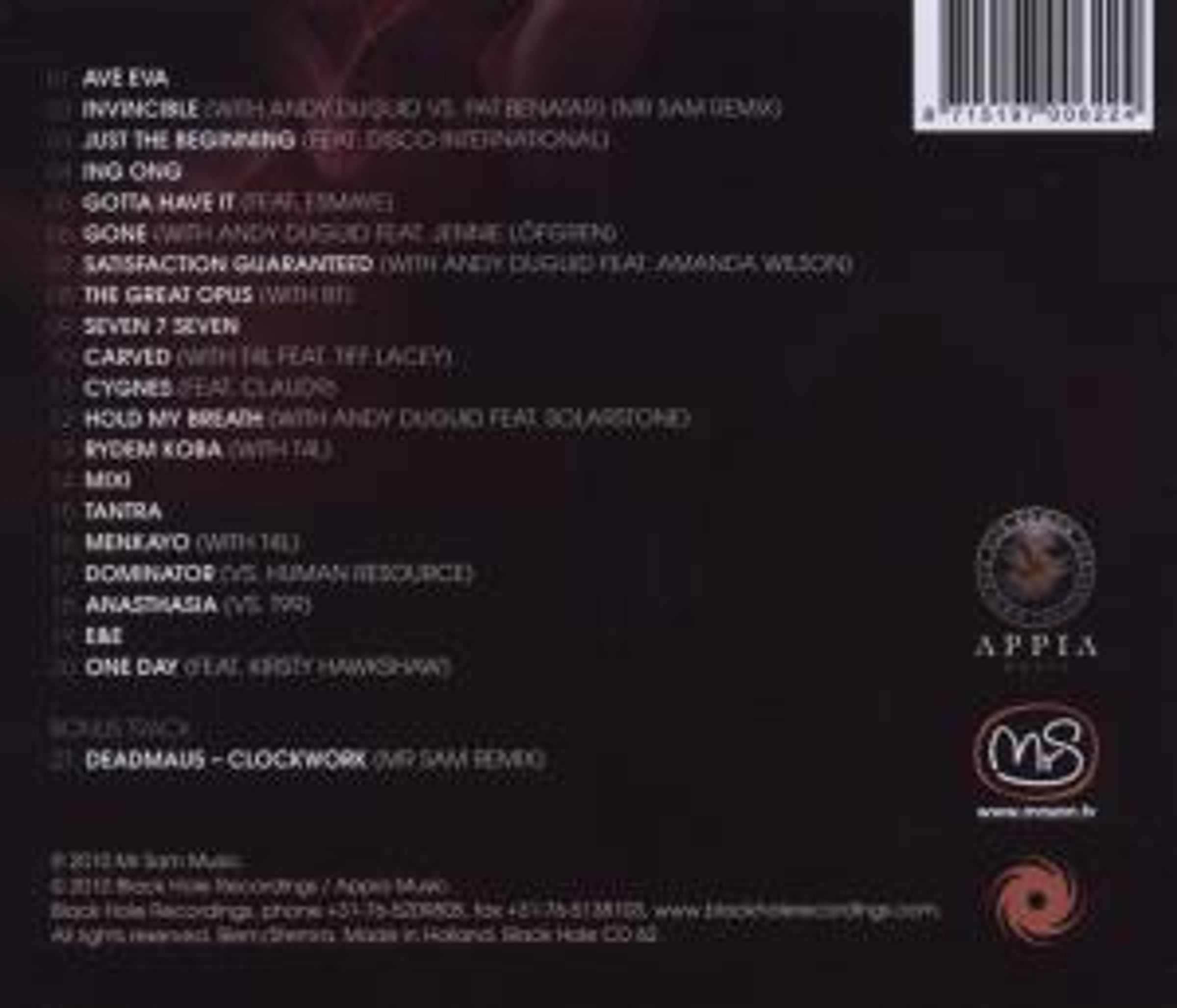 Mr Sam liefert ein exzellentes Dance-Pop-Album mit vielen Kollabos ab, darunter mit Trendproducer Deadmau5, Freemasons-Sängerin Amanda Wilson & Progressive-Kollege Andy Duguid. Als Bonus gibt es erstklassige Cover der Klassiker T99 "Anasthasia" & Human Resource "Dominator". Die erste Single "Satisfaction Guaranteed" feat. Amanda Wilson rockt bereits die Dancefloors weltweit.