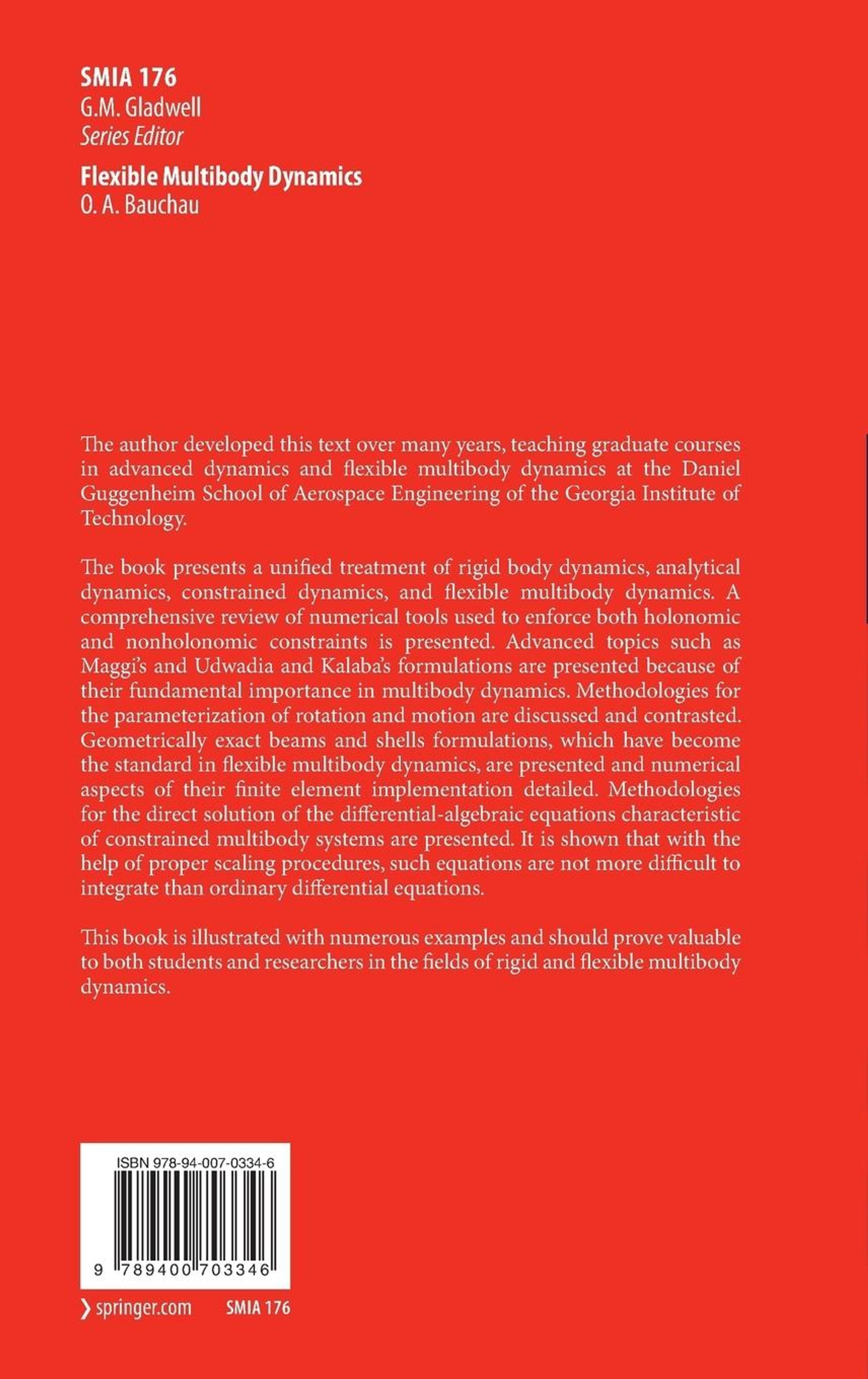 The author developed this text over many years, teaching graduate courses in advanced dynamics and flexible multibody dynamics at the Daniel Guggenheim School of Aerospace Engineering of the Georgia Institute of Technology.