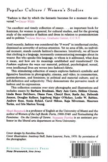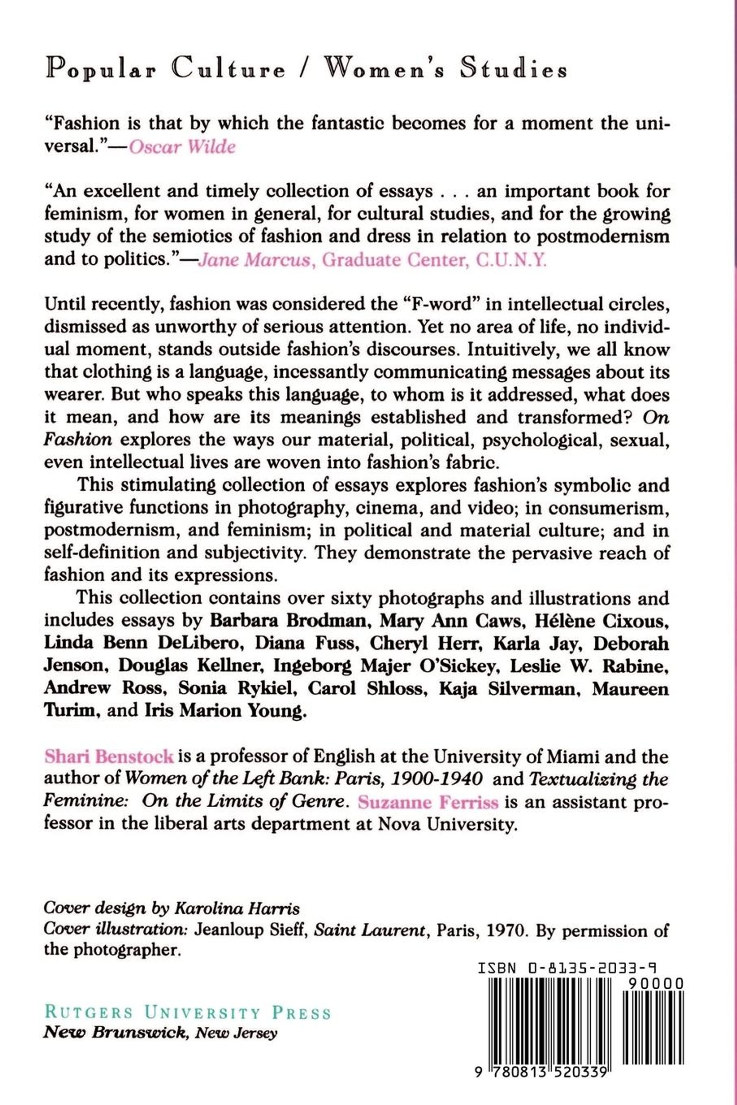 Until recently, fashion was considered the "F-word" in intellectual circles, dismissed as unworthy of serious attention. Yet no area of life, no individual moment, stands outside fashion's discourses. Intuitively, we all know that clothing is a language, incessantly communicating messages about its wearer. But who speaks this language, to whom is it addressed, what does it mean, and how are its meanings established and transformed? On Fashion explores the ways our material, political, psychological, sexual, even intellectual lives are woven into fashion's fabric.
