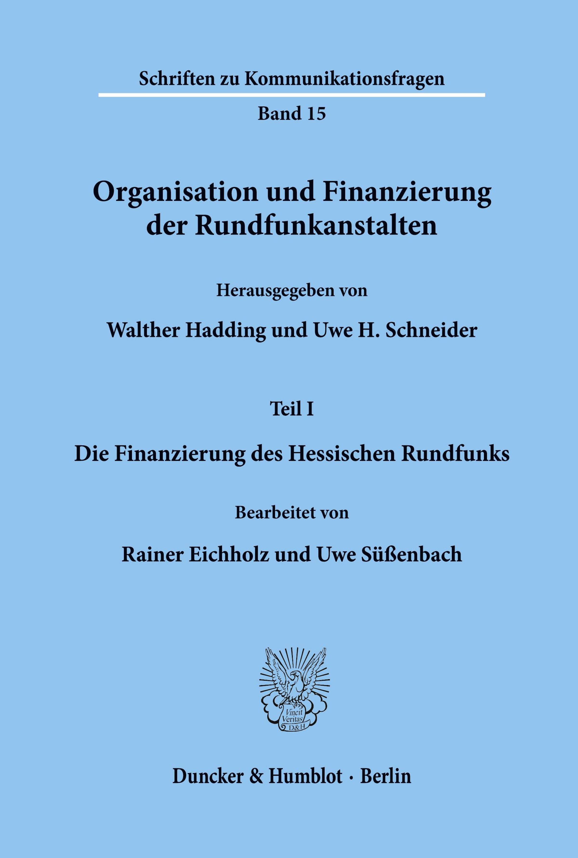- Teil I: Die Finanzierung des Hessischen Rundfunks. Bearb. von Rainer Eichholz / Uwe Süßenbach.