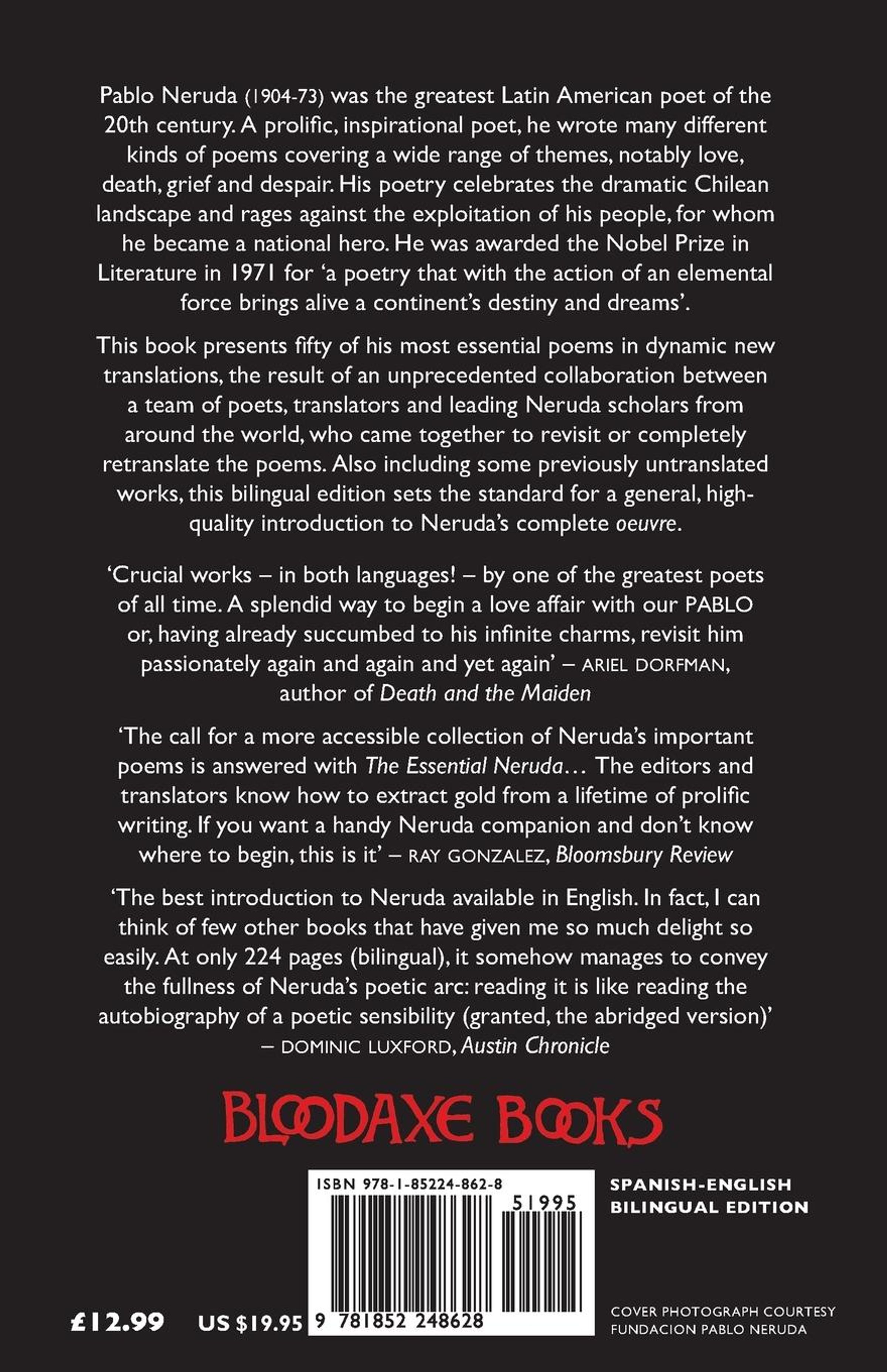 Pablo Neruda (1904-73) was the greatest Latin American poet of the 20th century. A prolific, inspirational poet, he wrote many different kinds of poems covering a wide range of themes, notably love, death, grief and despair. His poetry celebrates the dramatic Chilean landscape and rages against the exploitation of his people, for whom he became a national hero. He was awarded the Nobel Prize in Literature in 1971 for 'a poetry that with the action of an elemental force brings alive a continent's destiny and dreams'. This book presents fifty of his most essential poems in dynamic new translations, the result of an unprecedented collaboration between a team of poets, translators and leading Neruda scholars who came together to revisit or completely retranslate the poems. Also including some previously untranslated works, this bilingual edition sets the standard for a general, high-quality introduction to Neruda's complete oeuvre. The Essential Neruda includes translations by Mark Eisner, John Felstiner, Forrest Gander, Robert Hass, Jack Hirschman, Stephen Kessler, Stephen Mitchell and Alastair Reid, with an introduction by Mark Eisner