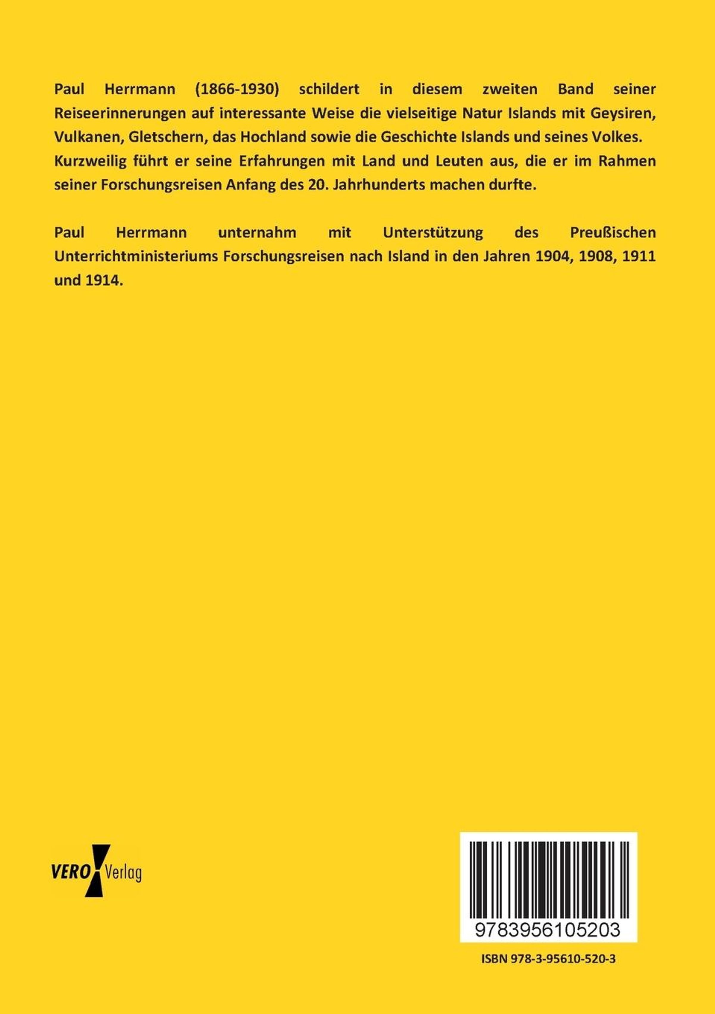 Paul Herrmann (1866-1930) schildert in diesem zweiten Band seiner Reiseerinnerungen auf interessante Weise die vielseitige Natur Islands mit Geysiren, Vulkanen, Gletschern, das Hochland sowie die Geschichte Islands und seines Volkes. Kurzweilig führt er seine Erfahrungen mit Land und Leuten aus, die er im Rahmen seiner Forschungsreisen Anfang des 20. Jahrhunderts machen durfte.