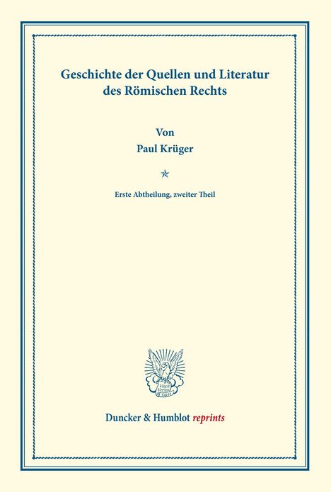 Paul Krüger: Geschichte der Quellen und Literatur des Römischen Rechts., Kartoniert / Broschiert