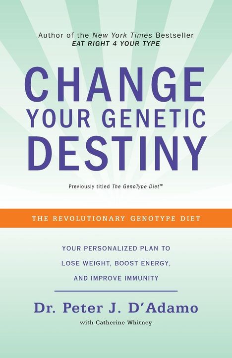 With over five million copies sold worldwide of Eat Right 4 Your Type and additional books in the Blood Type Diet series, Dr. Peter J. D'Adamo pioneered a new, revolutionary approach to dieting-one linked to a person' s blood type. In Change Your Genetic Destiny, he takes his groundbreaking research to the next level by identifying six unique genetic types. Whether you are a Hunter, Gatherer, Teacher, Explorer, Warrior, or Nomad, Dr. D'Adamo offers a customized program that complements your genetic makeup to maximize health and weight loss, as well as prevent or even reverse disease. In simple, concise prose, Dr. D'Adamo explains how a host of environmental factors, including diet and lifestyle, dictate how and when your genes express themselves. He goes on to demonstrate precisely how, with the right tools, you can alter your genetic destiny by turning on the good genes and silencing the bad ones. Your health risks, weight, and life span can all be improved by following the GenoType Diet that's right for you.