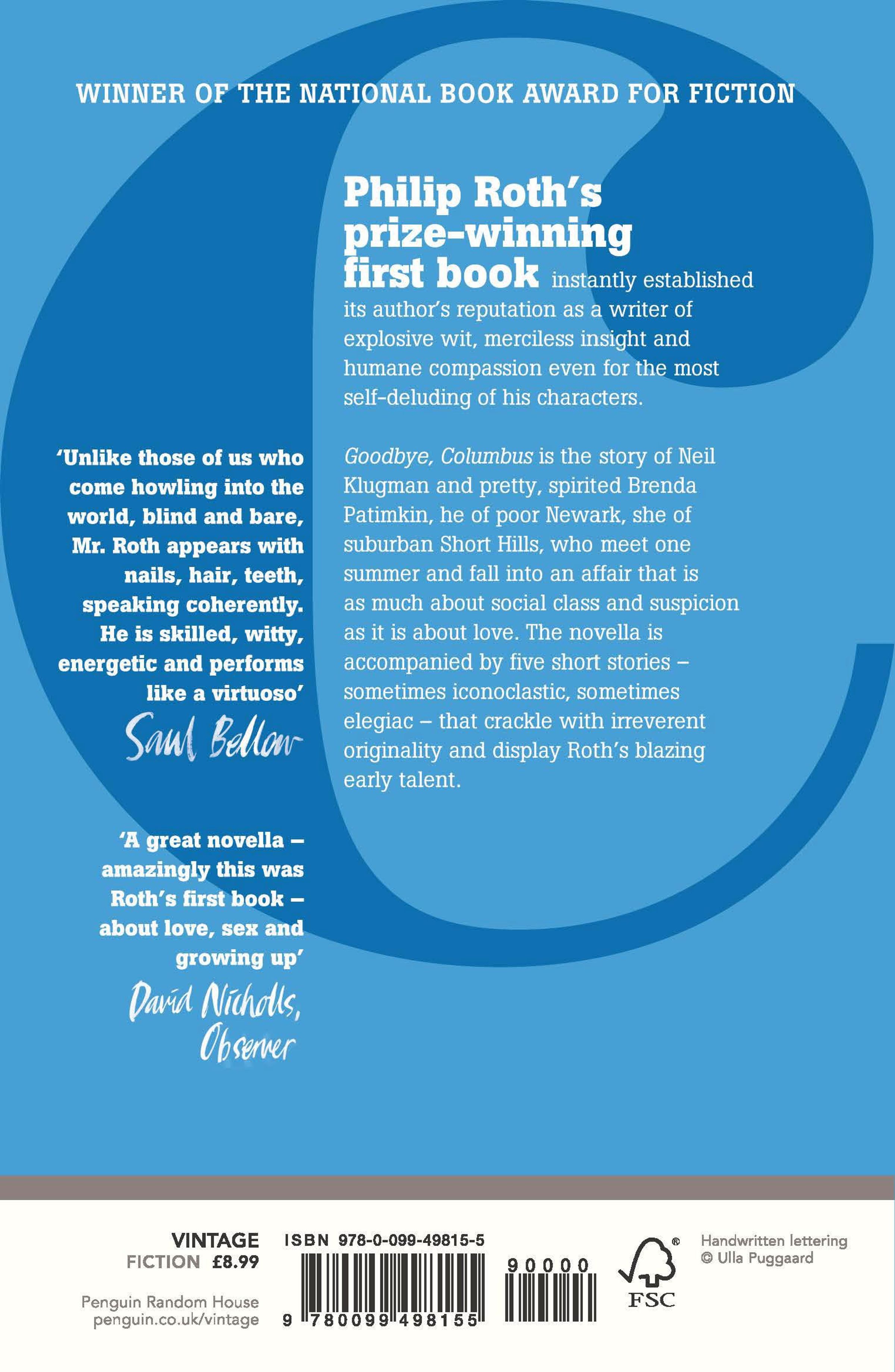 Goodbye, Columbus is the story of Neil Klugman and pretty, spirited Brenda Patimkin, he of poor Newark, she of suburban Short Hills, who meet one summer break and dive into an affair that is as much about social class and suspicion as it is about love. The novella is accompanied by five short stories that range in tone from the iconoclastic to the astonishingly tender.