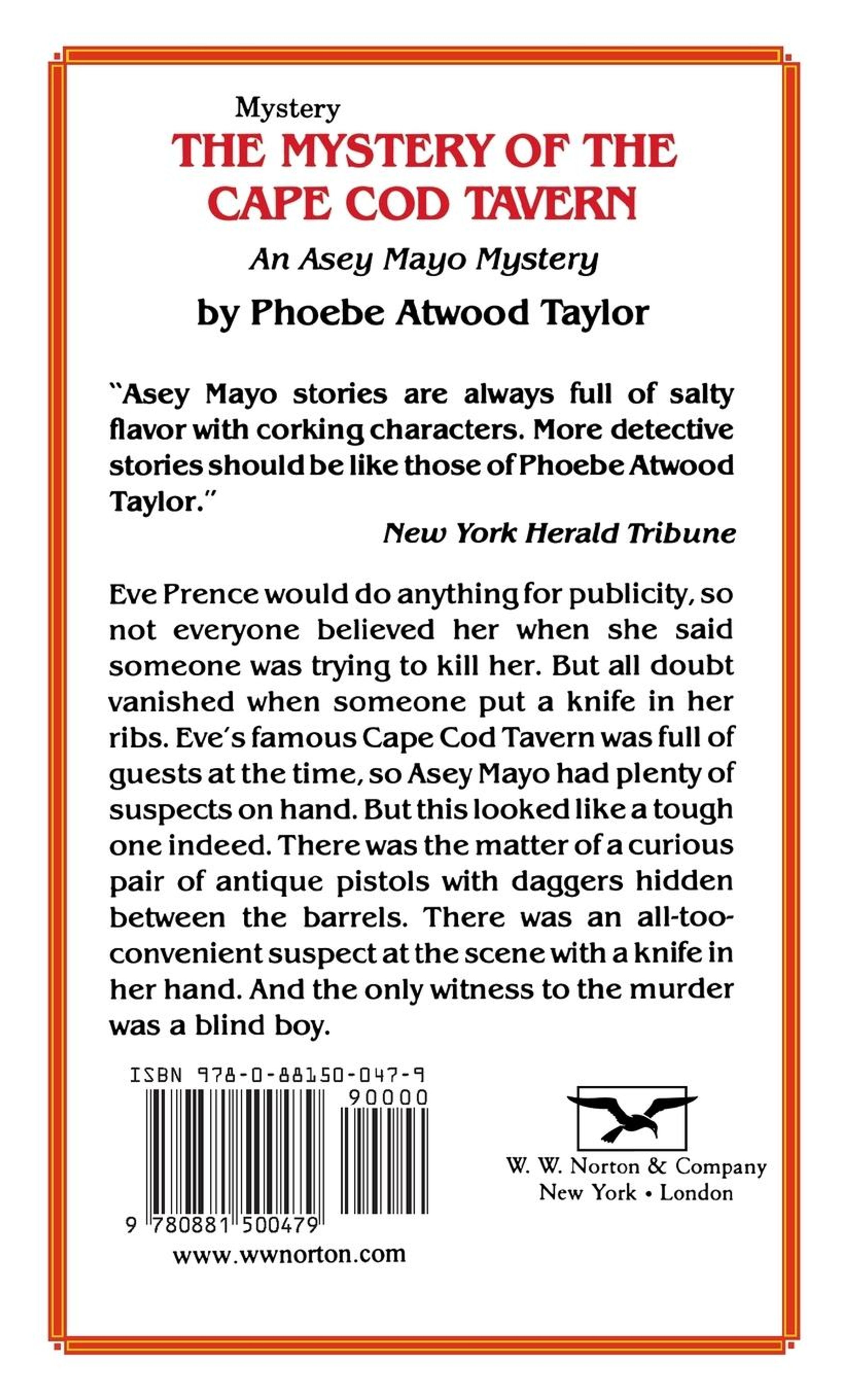 For all its ingenious plot, The Mystery of the Cape Cod Tavern is more than a mystery; it is a genuine New England novel, full of Yankee horse sense, Cape Cod culture, and solid characters. This classic is an apt accomplice for an evening's excursion into the world of crime for Asey Mayo fans and initiate mystery lovers alike.