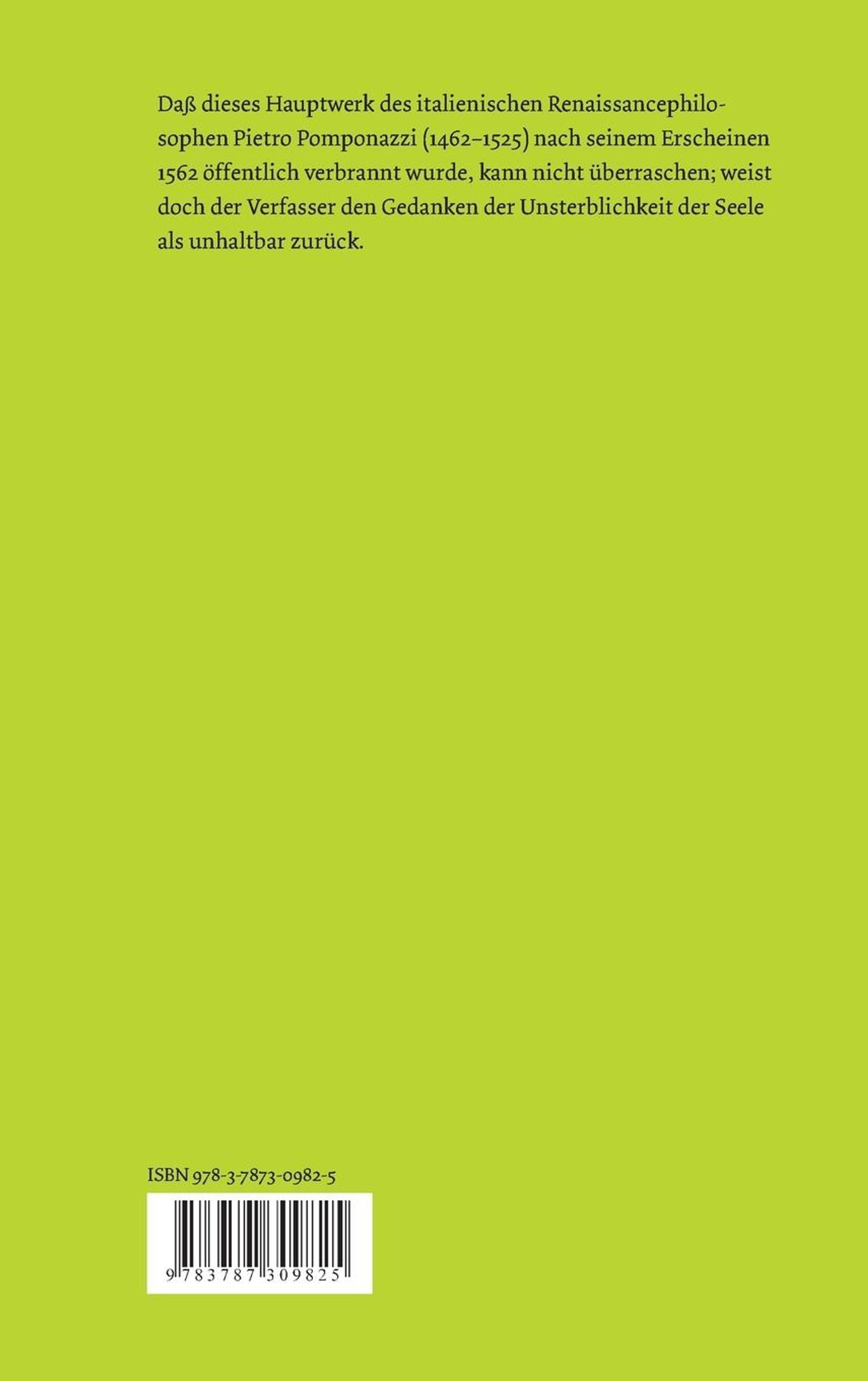 Pietro Pomponazzi: Abhandlung über die Unsterblichkeit der Seele / Tractatus de immortalitate animae, Gebunden