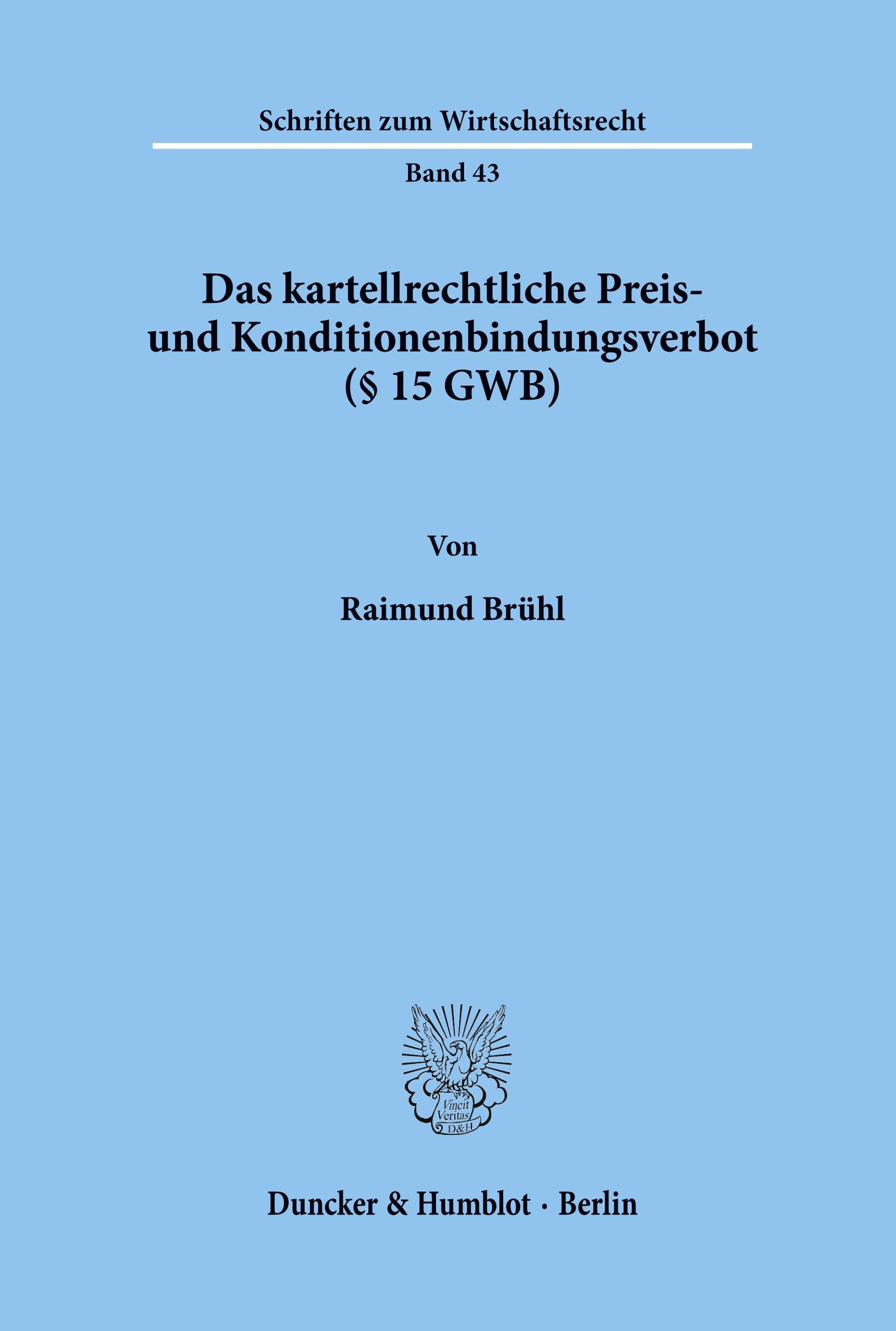 Raimund Brühl: Das kartellrechtliche Preis- und Konditionenbindungsverbot (§ 15 GWB)., Kartoniert / Broschiert